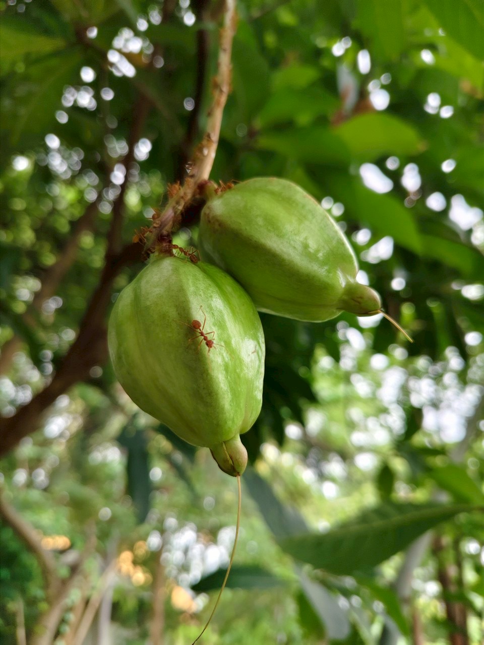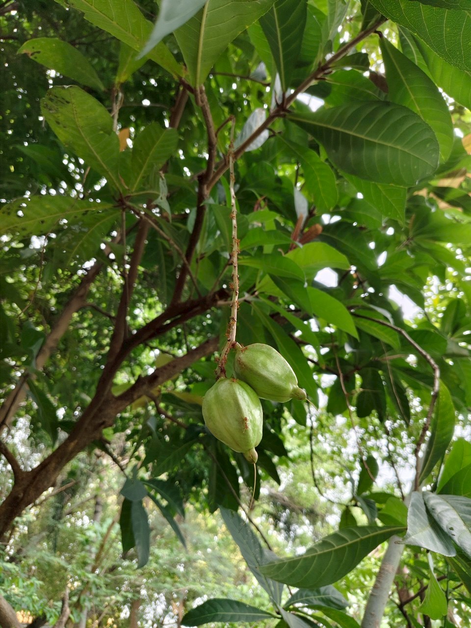 | ลักษณะผล | ผลคล้ายฝักบัวหลวงหรือรูประฆังคว่ำ ขนาด 3-4.5 เซนติเมตร เมื่อแก่มีสีน้ำตาลอมเขียว ผิวขรุขระ ภายในผลมีเนื้อสีเหลือง มี 2-3 เมล็ด |