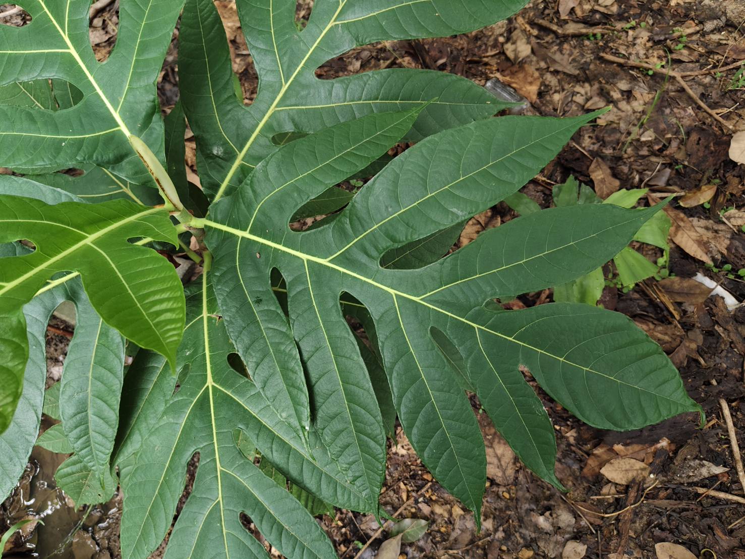 | ลักษณะใบ | ใบเป็นใบเดี่ยวออกสลับกัน ลักษณะใบคล้ายรูปไข่ ใบมีสีเขียวเข้ม ใบใหญ่และหนา มีรอยหยักหรือร่องลึกเกือบถึงก้านกลางใบ (คล้ายใบมะละกอ) ก้านใบเห็นเด่นชัด |