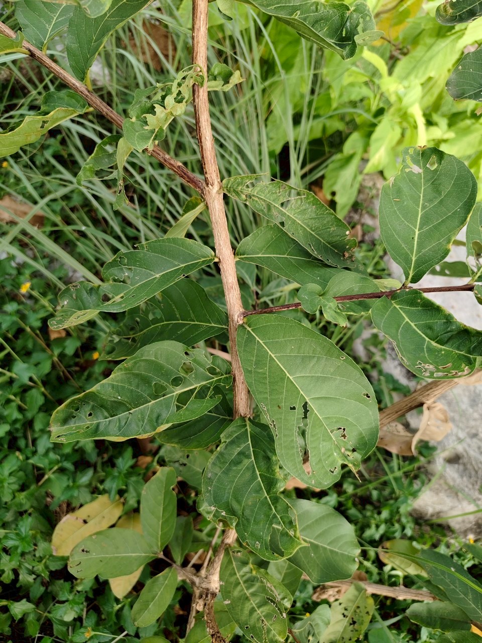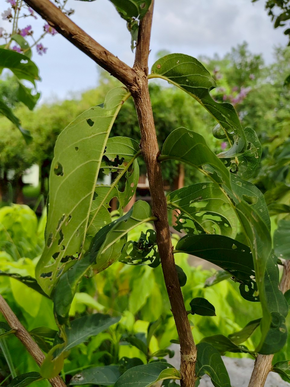| ลักษณะใบ | ใบเป็นใบเดี่ยว ออกเรียงสลับกัน บางทีออกเรียงเกือบตรงข้าม ลักษณะของใบเป็นรูปไข่หรือรูปขอบขนานแกมรูปหอก เห็นตาง่ามชัดเจน ใบมีขนาดเล็กกว่าใบอินทนิลน้ำ (ขนาด 2 ใน 3 ส่วน) ปลายใบทู่ โคนใบทู่หรือกลม ใบมีขนาดกว้างประมาณ 3-6 เซนติเมตร และยาวประมาณ 7-14 เซนติเมตร แผ่นใบเป็นสีเขียว หลังใบเกลี้ยงหรือเกือบเกลี้ยง ส่วนท้องใบมีขนสีน้ำตาลสาก ๆ ขึ้นหนาแน่น |