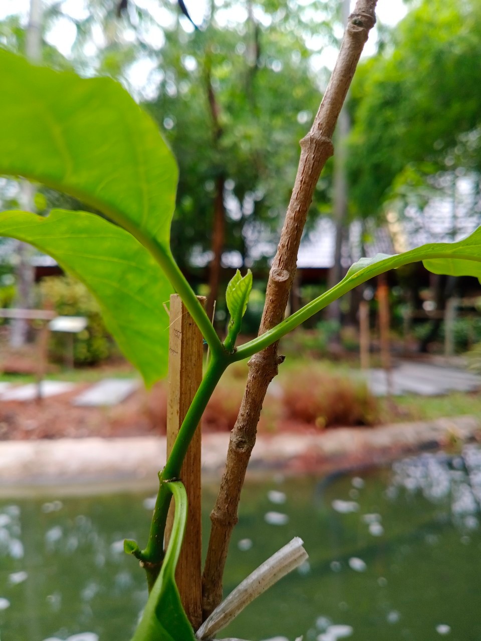 | ลักษณะวิสัย | เป็นไม้เถาเลื้อยพาดพันต้นไม้อื่น เลื้อยได้ไกลถึง 6 เมตร เถากลม สีเขียว ทุกส่วนภายในต้นมีน้ำยางสีขาว |