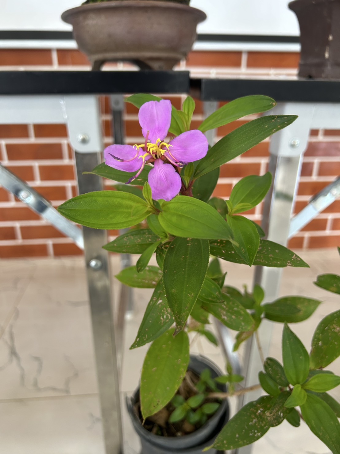 | ลักษณะดอก | ดอกออกเป็นช่อที่ปลายยอด ช่อละประมาณ 3-5 ดอก เมื่อบานจะมีขนาดเส้นผ่านศูนย์กลางประมาณ 4-5 เซนติเมตร ดอกเป็นสีม่วงอมสีชมพู โดยทั่วไปดอกจะมีกลีบดอก 4-6 กลีบ ส่วนกลีบเลี้ยงดอกมี 5 กลีบ มีถ้วยรองดอกปกคลุมด้วยเกล็ดแบนเรียบ ดอกเป็นช่อแบบสมบูรณ์เพศ ดอกมีเกสรเพศผู้สีเหลือง 10 ก้าน เรียงเป็นวง 2 วง และมีรยางค์สีม่วงโค้งงอ ส่วนรังไข่อยู่ใต้วงกลีบ สามารถออกดอกได้ตลอดทั้งปี แต่จะมีมากในช่วงฤดูฝน |