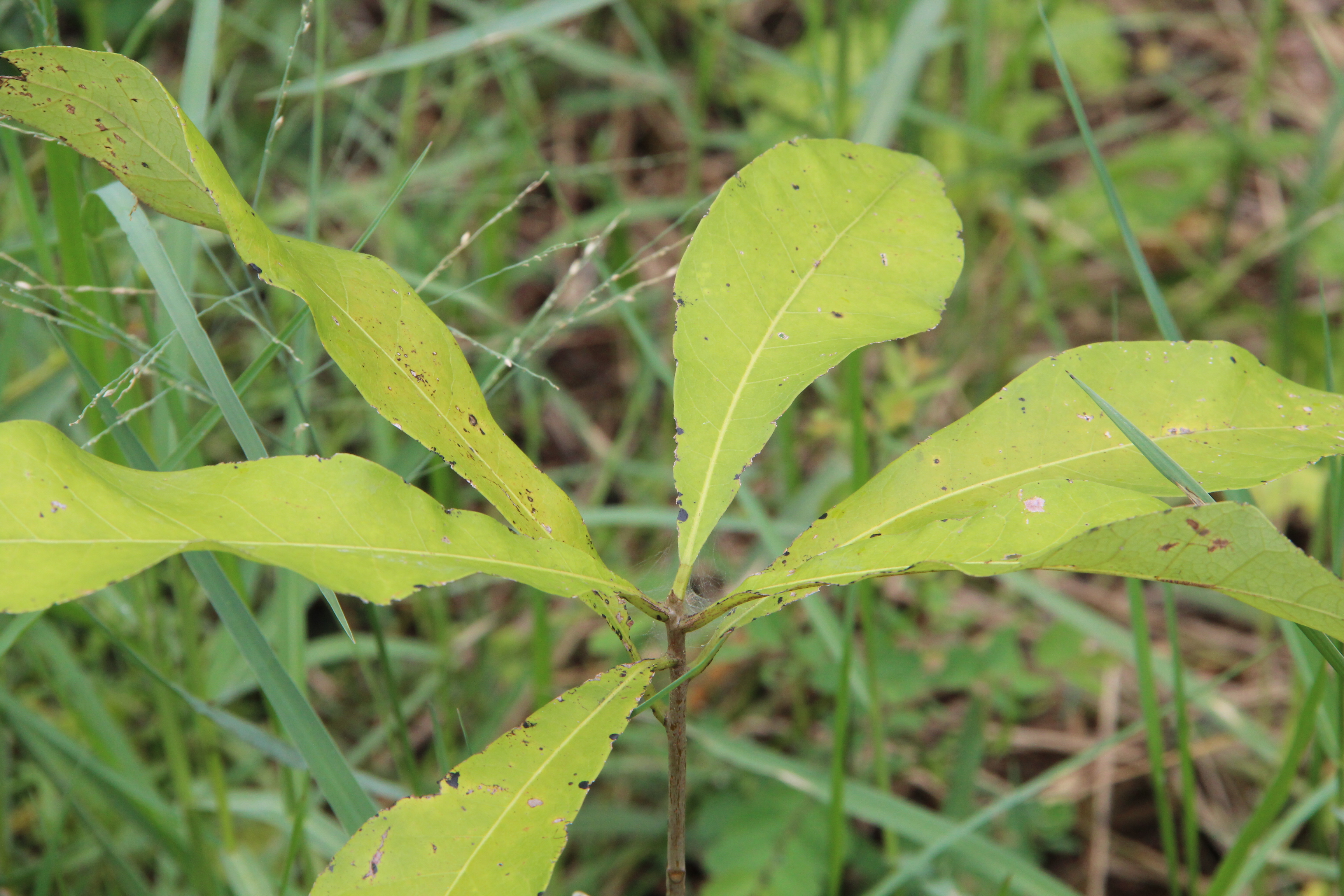 | ลักษณะใบ | ใบเป็นใบเดี่ยว ออกเรียงตรงข้ามกัน ใบเป็นรูปรีแกมขอบขนาน ปลายใบเป็นติ่งแหลม โคนใบมนหรือเว้าเล็กน้อย |