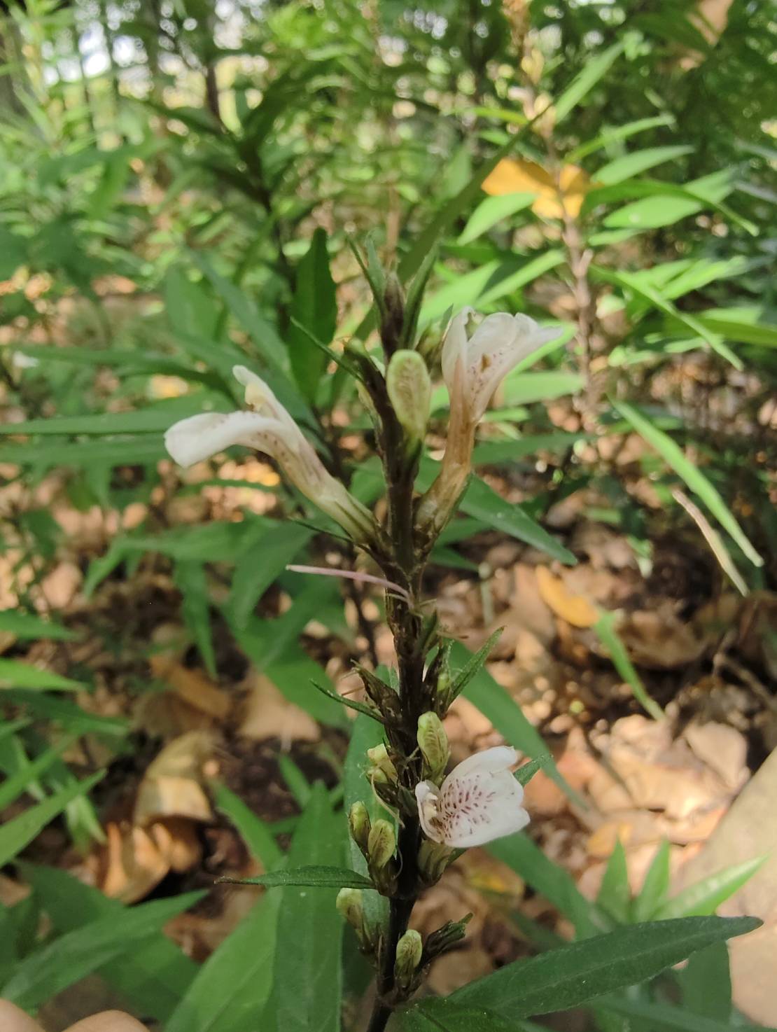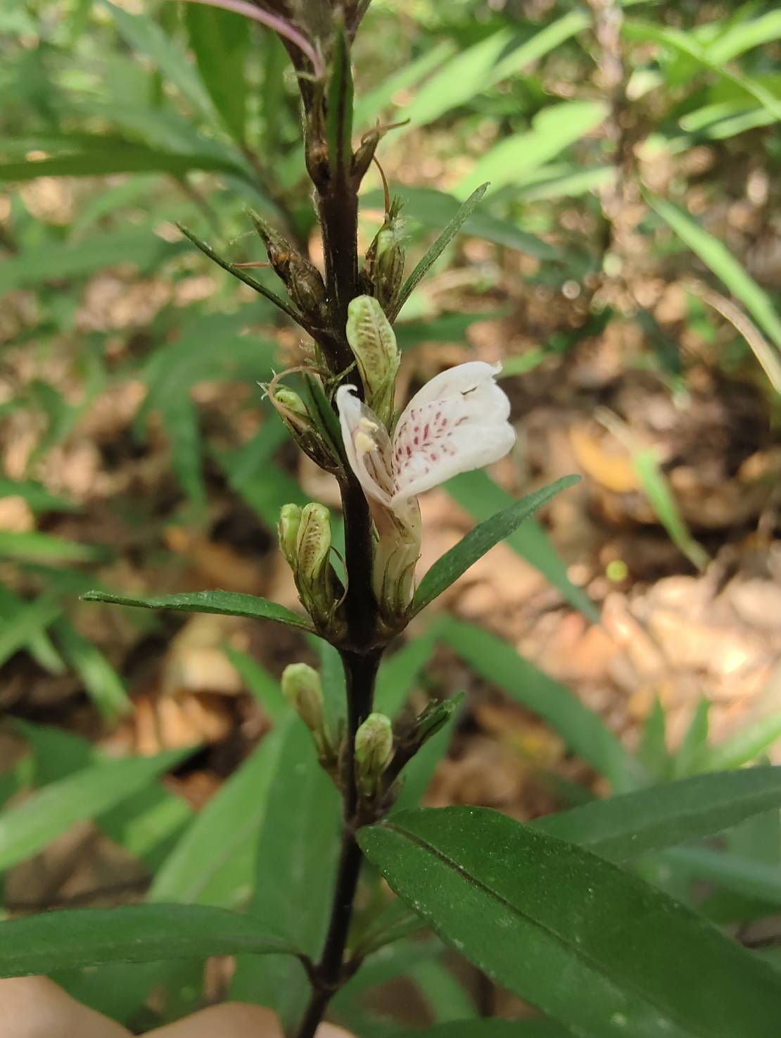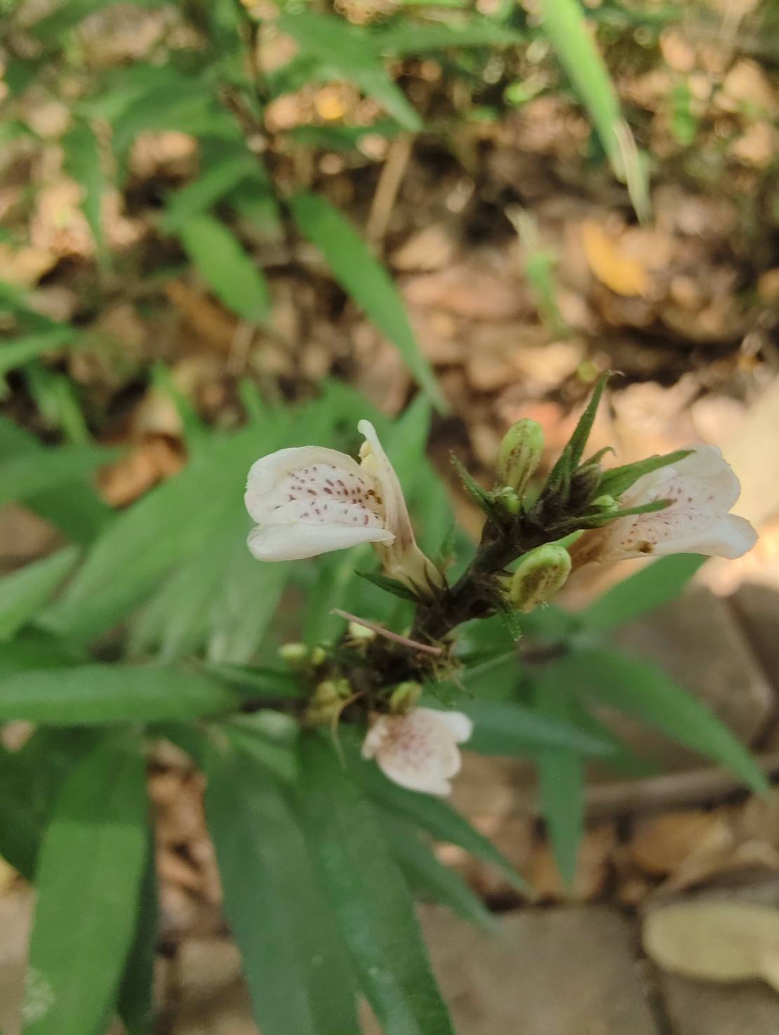| ลักษณะใบ | ใบเป็นใบเดี่ยว ออกตรงข้ามเป็นคู่ ๆ รูปใบยาวเรียวแคบโคน และหลายใบแหลม ขอบใบเรียบ ก้านใบสั้น ก้านใบแกนกลางใบมีสีแดง |