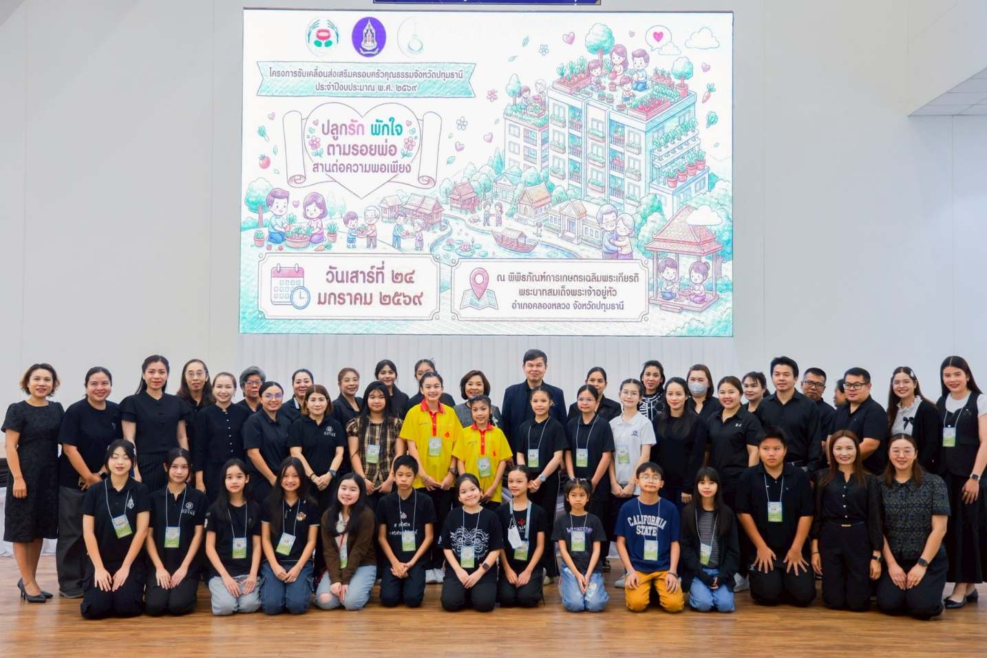 วันเสาร์ที่ 24 มกราคม 2569 พิพิธภัณฑ์การเกษตรเฉลิมพระเกียรติพระบาทสมเด็จพระเจ้าอยู่หัว จังหวัดปทุมธานี ให้การต้อนรับคณะจากสำนักงานวัฒนธรรมจังหวัดปทุมธานี ซึ่งนำเจ้าหน้าที่และกลุ่มครอบครัวเข้าร่วม “โครงการขับเคลื่อนส่งเสริมครอบครัวคุณธรรมจังหวัดปทุมธานี ประจำปีงบประมาณ 2569” โดยมี นางลัษมา ธารีเกษ วัฒนธรรมจังหวัดปทุมธานี เป็นประธานเปิดโครงการ พร้อมทั้ง พันจ่าเอก ประเสริฐ มาลัย ผู้อำนวยการ พกฉ. กล่าวต้อนรับคณะผู้เข้าร่วมกิจกรรม ณ ห้องประชุมศาสตร์พระราช สำนักงานพิพิธภัณฑ์เกษตรเฉลิมพระเกียรติพระบาทสมเด็จพระเจ้าอยู่หัว (องค์การมหาชน) จังหวัดปทุมธานี จากนั้นผู้เข้าร่วมกิจกรรมได้เข้าชมและเรียนรู้พระอัจฉริยภาพของพระมหากษัตริย์ไทยด้านการเกษตร ผ่านนิทรรศการภายในพิพิธภัณฑ์ ชมภาพยนตร์ 3 มิติ และเข้าชมพิพิธภัณฑ์กลางแจ้ง จัดแสดงการทำเกษตรเศรษฐกิจพอเพียงรวมถึงการจัดสรรพื้นที่ขนาดเล็กให้เกิดประโยชน์สูงสุดในการผลิตสร้างคลังอาหารี่ปลอดภัย ในฐานการเรียนรู้เกษตรพอเพียงเมืองและฐานเรียนรู้ 1 ไร่พอเพียง และลงมือปฏิบัติการทำไมโครกรีน ซึ่งเป็นพืชผักอ่อนที่ใช้ระยะเวลาปลูกสั้น ดูแลไม่ซับซ้อน สามารถปลูกได้ในพื้นที่จำกัด การจัดกิจกรรมในครั้งนี้ นับเป็นความร่วมมือระหว่างหน่วยงานด้านวัฒนธรรมและแหล่งเรียนรู้ด้านการเกษตร เพื่อส่งเสริมสถาบันครอบครัวให้เป็นฐานสำคัญของสังคมไทย ควบคู่กับการปลูกฝังคุณธรรมจริยธรรม และการดำเนินชีวิตตามแนวทางเศรษฐกิจพอเพียง อันจะนำไปสู่ความเข้มแข็งของครอบครัว ชุมชน และสังคมโดยรวมอย่างยั่งยืน
