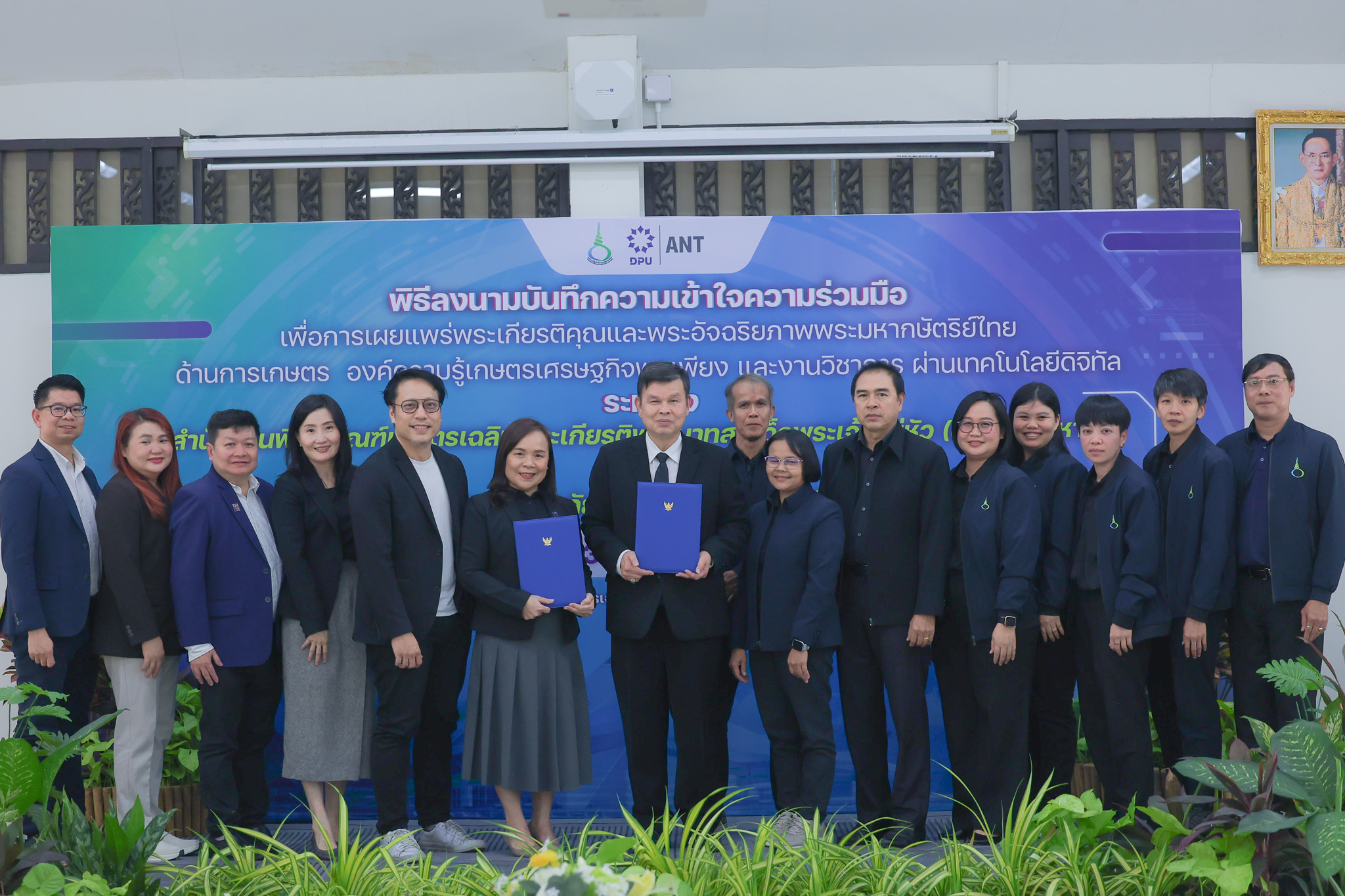 วันที่ 31 มีนาคม 2569 สำนักงานพิพิธภัณฑ์เกษตรเฉลิมพระเกียรติพระบาทสมเด็จพระเจ้าอยู่หัว (องค์การมหาชน) จัดพิธีลงนามบันทึกความเข้าใจความร่วมมือ (MOU) ร่วมกับ มหาวิทยาลัยธุรกิจบัณฑิตย์ โดยวิทยาลัยครีเอทีฟดีไซน์ แอนด์ เอ็นเตอร์เทนเมนต์เทคโนโลยี เพื่อร่วมกันพัฒนาและเผยแพร่พระเกียรติคุณและพระอัจฉริยภาพพระมหากษัตริย์ไทยด้านการเกษตร องค์ความรู้เกษตรเศรษฐกิจพอเพียง และงานวิชาการ ผ่านเทคโนโลยีดิจิทัล ความร่วมมือครั้งนี้มุ่งยกระดับพิพิธภัณฑ์สู่ “แหล่งเรียนรู้เกษตรเศรษฐกิจเชิงดิจิทัล” ที่ทันสมัย โดยจะพัฒนา สื่อดิจิทัล นวัตกรรมการเรียนรู้ และกิจกรรมเชิงประสบการณ์ เพื่อให้ประชาชนสามารถเข้าถึงองค์ความรู้ได้ง่าย สนุก และนำไปใช้ได้จริง โดยมุ่งให้การเรียนรู้ดังกล่าว ไม่เพียงเป็นการรับรู้ข้อมูล แต่สามารถนำไปประยุกต์ใช้ได้จริงในชีวิตประจำวัน สร้างทักษะและแนวคิดในการพึ่งตนเองตามหลักปรัชญาของเศรษฐกิจพอเพียง อันจะนำไปสู่การพัฒนาคุณภาพชีวิตอย่างมั่นคงและยั่งยืน โดยมีผู้บริหารของทั้งสองหน่วยงานร่วมลงนามและเป็นสักขีพยานในพิธี พันจ่าเอก ประเสริฐ มาลัย ผู้อำนวยการสำนักงานพิพิธภัณฑ์เกษตรเฉลิมพระเกียรติฯ กล่าวว่า “ความร่วมมือครั้งนี้ มีวัตถุประสงค์สำคัญในการเผยแพร่พระเกียรติคุณและพระอัจฉริยภาพของสถาบันพระมหากษัตริย์ไทยด้านการเกษตร การส่งเสริม สนับสนุน และพัฒนาพิพิธภัณฑ์สู่การเป็นแหล่งเรียนรู้เกษตรเศรษฐกิจเชิงดิจิทัลที่ทันสมัย ที่เป็นประโยชน์ต่อสังคม ให้เกิดการเรียนรู้ด้านการเกษตร ผสมผสานเข้ากับเทคโนโลยีดิจิทัลที่ทันสมัย เพื่อยกระดับแหล่งเรียนรู้ สร้างแรงบันดาลใจ สู่รูปแบบที่เข้าถึงประชาชนได้อย่างแท้จริง ทุกช่วงวัย” ด้าน ผู้ช่วยศาสตราจารย์ ดร. วิลาวัลย์ อินทร์ชำนาญ คณบดีวิทยาลัยครีเอทีฟดีไซต์ แอนด์ เอ็นเตอร์เทนเมนต์เทคโนโลยี มหาวิทยาลัยธุรกิจบัณฑิตย์ กล่าวว่า “มหาวิทยาลัยธุรกิจบัณฑิตย์ มีความมุ่งมั่นในการพัฒนาศักยภาพของนักศึกษา และบุคลากรให้พร้อมต่อการเปลี่ยนแปลงในยุคดิจิทัล โดยความร่วมมือในครั้งนี้เป็นโอกาสสำคัญในการเชื่อมการเรียนรู้ของนักศึกษาเข้ากับการทำงานจริง เพื่อสร้างนวัตกรรมที่เกิดประโยชน์ต่อสังคม โดยเฉพาะในเรื่องการพัฒนาสื่อดิจิทัล นวัตกรรมการเรียนรู้ และกิจกรรมเชิงประสบการณ์ เพื่อให้ประชาชนสามารถเข้าถึงองค์ความรู้ได้ง่าย สนุก และนำไปใช้ได้จริง” หลังเสร็จพิธีลงนาม ผู้บริหารทั้งสองฝ่ายได้เข้าเยี่ยมชมพื้นที่จัดแสดงพิพิธภัณฑ์ในอาคารและฐานการเรียน