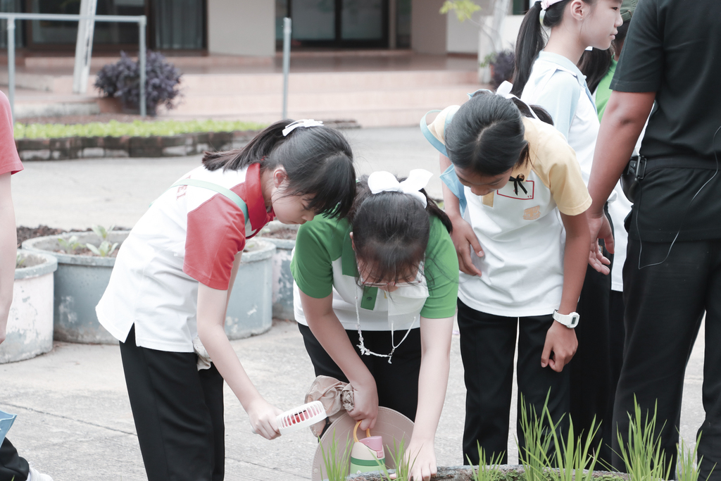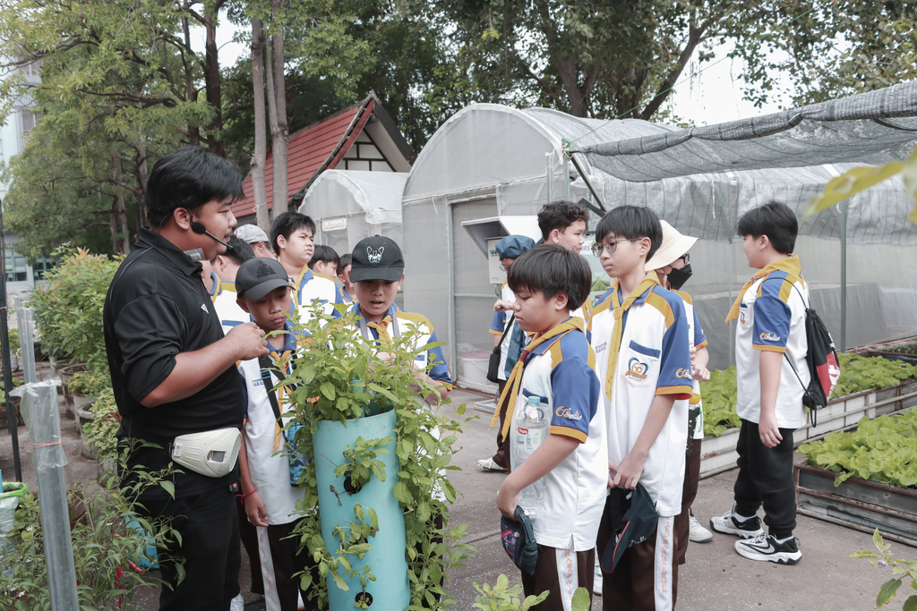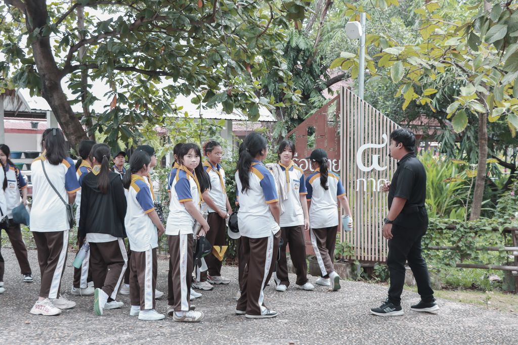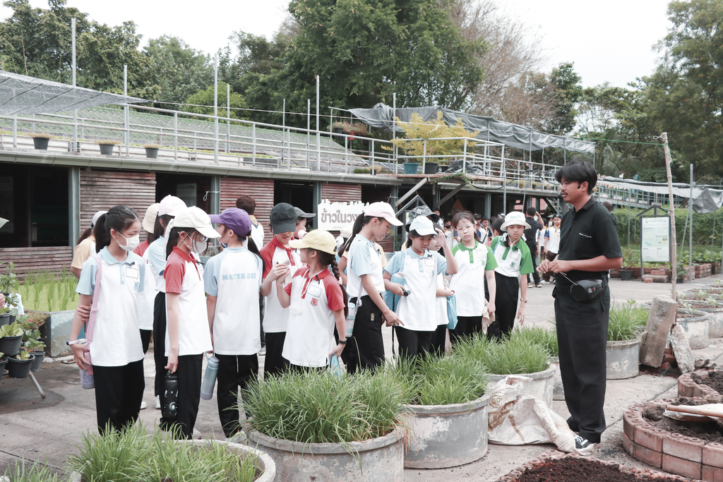 วันศุกร์ที่ 7 พฤศจิกายน 2568 โรงเรียนมาแตร์เดอีวิทยาลัย กทม. โรงเรียนสารสาสน์วิเทศราชฤกษ์ จ.นนทบุรี เข้าเยี่ยมชมพิพิธภัณฑ์การเกษตรฯ จ.ปทุมธานี ผ่านโครงการส่งเสริมการเรียนรู้เศรษฐกิจพอเพียง ในรูปแบบหลักสูตร “นวัตกรรมของพ่อ” และหลักสูตร “ลดเวลาเรียน เพิ่มเวลารู้” เริ่มต้นกิจกรรมด้วยการเรียนรู้พระอัจฉริยภาพของพระบาทสมเด็จพระเจ้าอยู่หัว รัชกาลที่ 9 ที่มุ่งเน้นการพัฒนาประเทศ และส่งเสริมให้ประชาชนสามารถพึ่งพาตนเองได้ รวมถึงเรียนรู้เรื่องราวหลักปรัชญาเศรษฐกิจพอเพียง ในพิพิธภัณฑ์ในหลวงรักเรา ผ่านนิทรรศการหลักการทรงงาน นิทรรศการวิถีเกษตรของพ่อ ต่อด้วยพิพิธภัณฑ์ป่าดงพงไพร จากนั้นเรียนรู้กระบวนการฝึกทักษะการคิดแก้ปัญหาการทำงานร่วมกัน ผ่านกิจกรรมสร้างสรรค์ความคิด “รากฐานแห่งความมั่นคง” พร้อมชมภาพยนตร์แอนิเมชัน 3 มิติ นอกจากนั้นทางคณะยังได้เข้าชมพิพิธภัณฑ์กลางแจ้ง สนุกไปกับการเดินชมฐานการเรียนรู้บ้านนวัตกรรมพลังงาน ฐานการเรียนรู้บ้านดินบ้านฟาง ฐานการเรียนรู้เกษตรพอเพียงเมือง และฐานการเรียนรู้วิถีเกษตรไทย 4 ภาค รวมถึงการลงมือฝึกปฏิบัติการสร้างบ้านดิน และการทำนาโยนกล้า ที่สามารถนำไปปรับประยุกต์ใช้ได้จริง อีกทั้งยังเป็นการสร้างจิตสำนึกที่ดีในการทำเกษตรในกับผู้ที่เข้าร่วมกิจกรรม