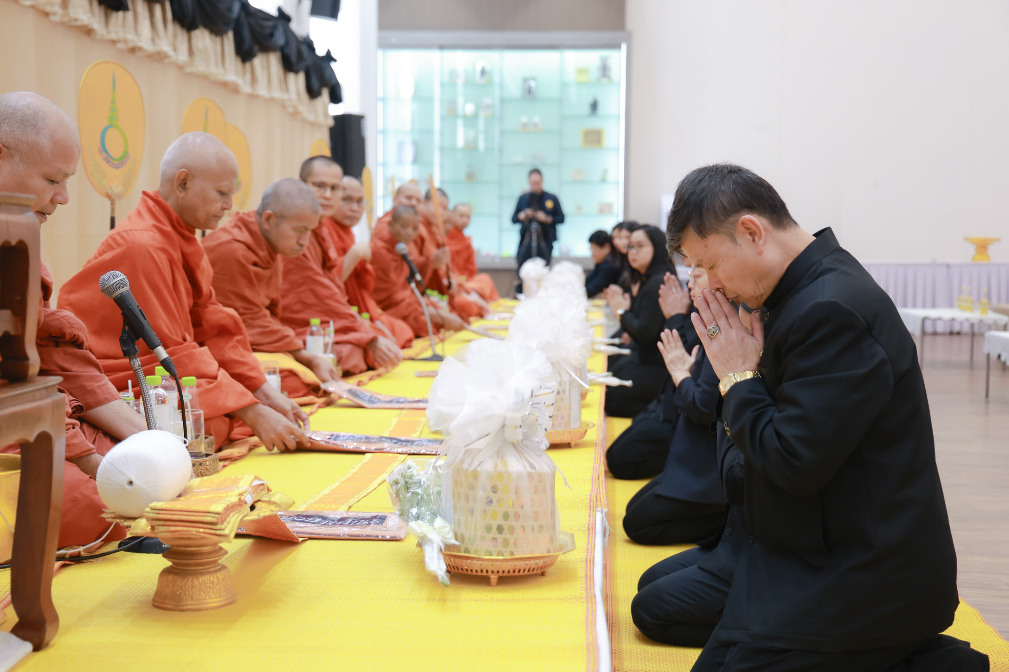 วันศุกร์ที่ 12 ธันวาคม 2568 เวลา 10.30 น. พันจ่าเอก ประเสริฐ มาลัย ผู้อำนวยการสำนักงานพิพิธภัณฑ์เกษตรเกียรติพระบาทสมเด็จพระเจ้าอยู่หัว นำคณะผู้บริหาร และเจ้าหน้าที่สำนักงานพิพิธภัณฑ์เกษตรฯ จัดพิธีบําเพ็ญกุศลปัญญาสมวาร 50 วัน อุทิศถวายพระราชกุศลแด่ สมเด็จพระนางเจ้าสิริกิติ์ พระบรมราชินีนาถ พระบรมราชชนนีพันปีหลวง ณ ห้องประชุมศาสตร์พระราชา ชั้น 2 อาคารสำนักงานพิพิธภัณฑ์เกษตรฯ จ.ปทุมธานี