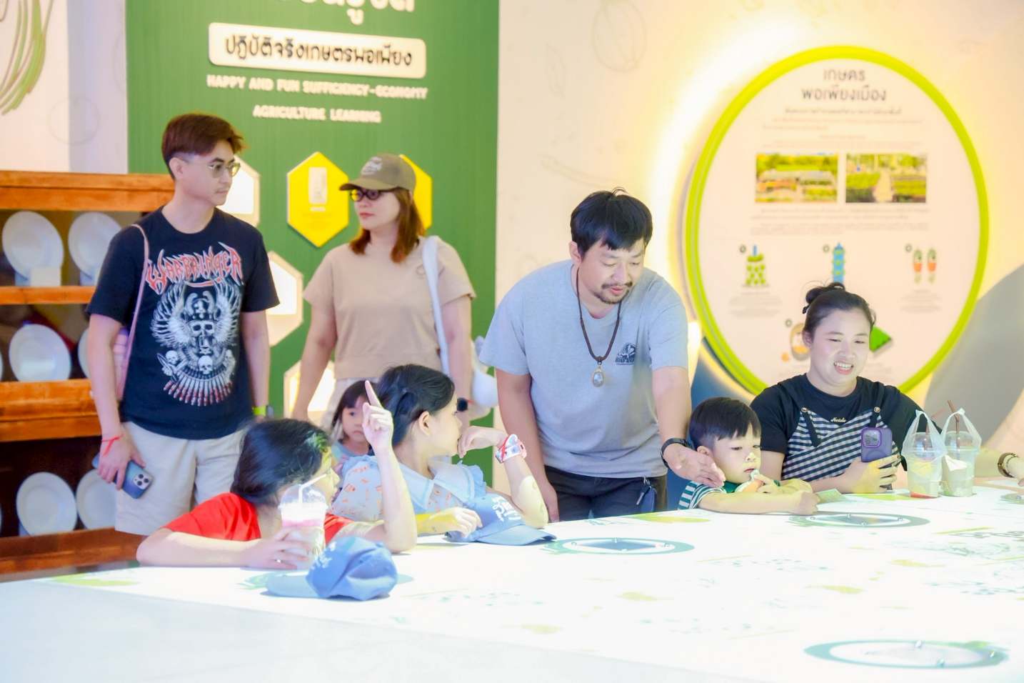 ภาพบรรยากาศกิจกรรมท่องเที่ยวสุขสันต์ ที่พิพิธภัณฑ์เกษตรฯ ในกิจกรรม “ฟาร์มสุขครอบครัว เก็บผักไข่ ทำอาหาร” ที่สร้างประสบการณ์สนุก ตื่นเต้น และอบอุ่น ผ่านการลงมือเรียนรู้วิถีเกษตรอย่างใกล้ชิด ท่ามกลางบรรยากาศธรรมชาติร่มรื่น และเพลิดเพลินกับการเก็บผักสดจากแปลง เก็บไข่ไก่จากฟาร์ม เรียนรู้แหล่งที่มาของอาหาร ก่อนนำวัตถุดิบที่ได้มาร่วมกันทำอาหารอย่างสนุกสนาน เสริมสร้างความสัมพันธ์ในครอบครัว พร้อมปลูกฝังแนวคิดการใช้ชีวิตอย่างพอเพียง และเห็นคุณค่าของอาหารที่ปลอดภัย นอกจากนี้ ยังได้เข้าชมนิทรรศการ Immersive of Mado Pavilion สัมผัสเรื่องราวเกษตรผ่านเทคโนโลยีสมัยใหม่ และเยี่ยมชมอาคารพิพิธภัณฑ์ในหลวงรักเรา ถ่ายทอดพระอัจฉริยภาพและพระราชปณิธานด้านการเกษตรไทยอย่างลึกซึ้ง
