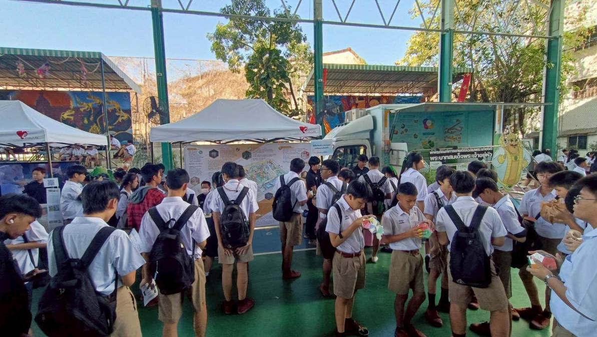 การจัดนิทรรศการสัญจรครั้งนี้ มีคณะครู นักเรียน และเครือข่ายสถานศึกษาเข้าร่วมกิจกรรมรวมจำนวน 10 โรงเรียน โดยพิพิธภัณฑ์การเกษตรฯ ได้นำรถนิทรรศการเคลื่อนที่เข้าจัดแสดง เพื่อเผยแพร่พระเกียรติคุณและพระอัจฉริยภาพของพระมหากษัตริย์ไทยด้านการเกษตร ถ่ายทอดองค์ความรู้สู่เยาวชนผ่านรูปแบบการเรียนรู้ที่เข้าใจง่าย และส่งเสริมการเรียนรู้นอกห้องเรียน ภายในบูธนิทรรศการ มีกิจกรรมสร้างสรรค์เพื่อเสริมทักษะและความรู้ อาทิ กิจกรรม “แก้ว กล้า เพาะ” กิจกรรมลูกบอลองค์ความรู้เกี่ยวกับผลไม้และสัตว์ ตลอดจนการประชาสัมพันธ์กิจกรรมและภารกิจของพิพิธภัณฑ์การเกษตรฯ เพื่อเปิดโอกาสให้สถานศึกษาและเยาวชนได้เข้าถึงแหล่งเรียนรู้ด้านการเกษตรตามแนวพระราชดำริ บรรยากาศภายในงานเป็นไปอย่างคึกคัก นักเรียน คุณครู และเครือข่ายโรงเรียนให้ความสนใจเยี่ยมชมบูธนิทรรศการ สอบถามข้อมูล และร่วมกิจกรรมอย่างต่อเนื่อง สะท้อนถึงความสำเร็จในการขยายโอกาสทางการเรียนรู้ และการสร้างความตระหนักรู้ด้านการเกษตรแก่เยาวชน ซึ่งเป็นกำลังสำคัญของประเทศในอนาคต