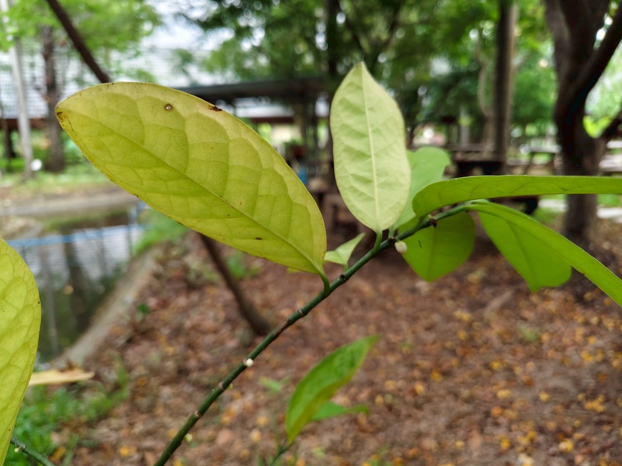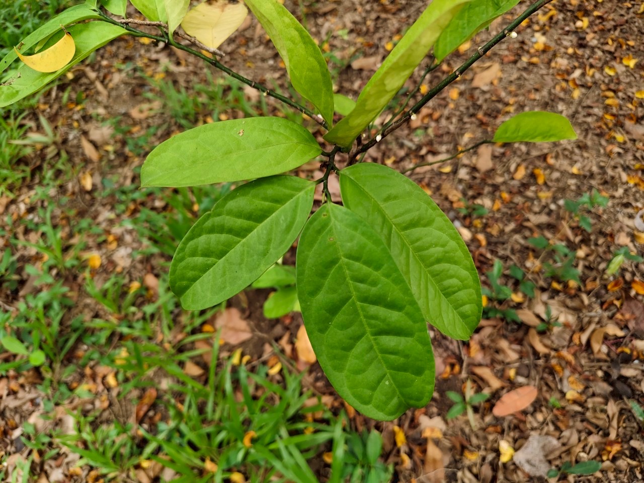 | ลักษณะใบ | ใบเป็นรูปรีถึงรูปขอบขนาน โคนใบกลม แผ่นใบค่อนข้างหนาและแข็ง ผิวมัน |
