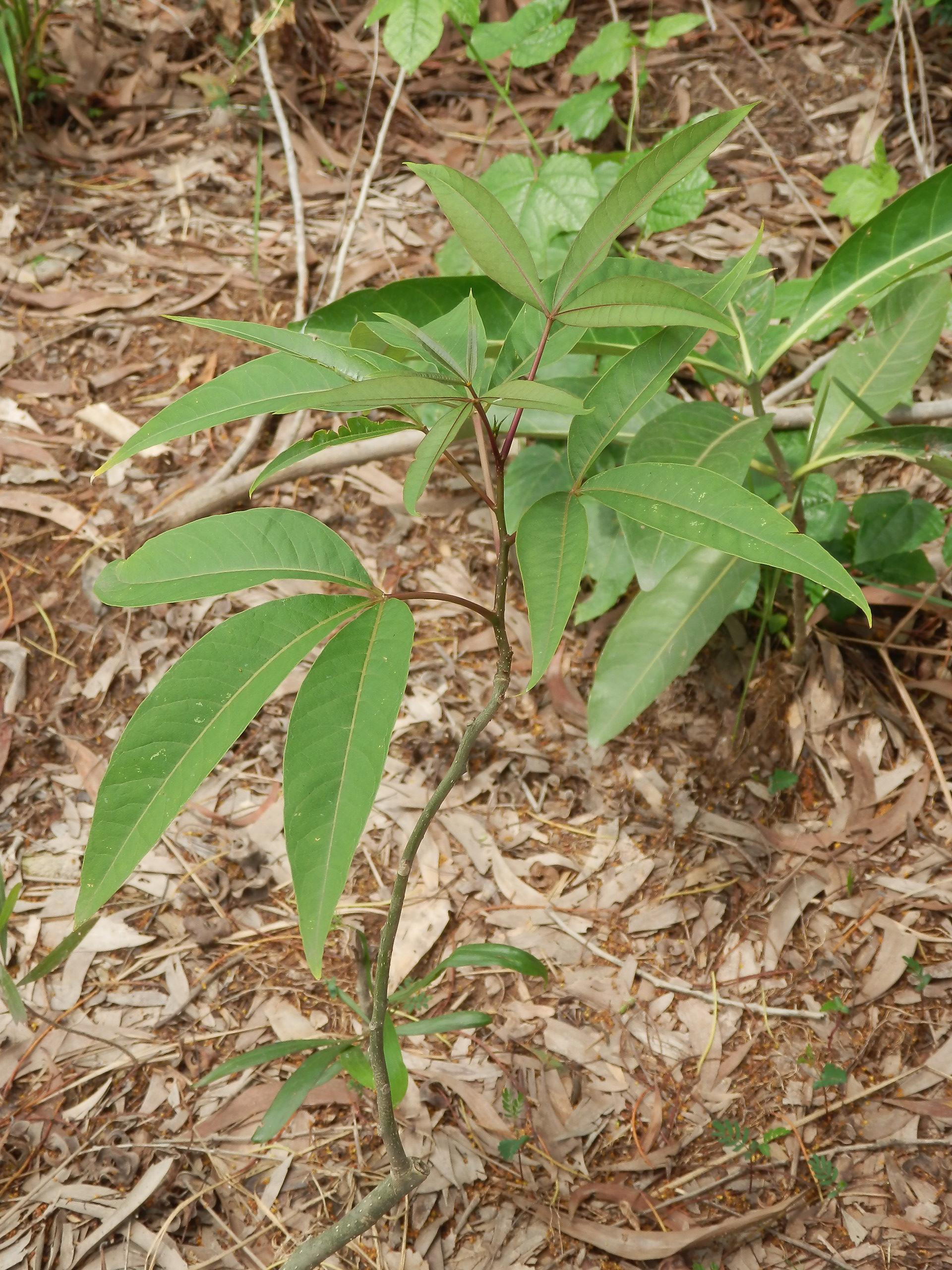 | ลักษณะใบ | ใบประกอบแบบนิ้วมือ เรียงสลับ มีใบย่อย 3 ใบ รูปใบหอกถึงรูปขอบขนาน โคนใบสอบ ปลายใบเรียวแหลม แผ่นใบค่อนข้างหนาเป็นมัน ด้านล่างสีอ่อนกว่าด้านบน |