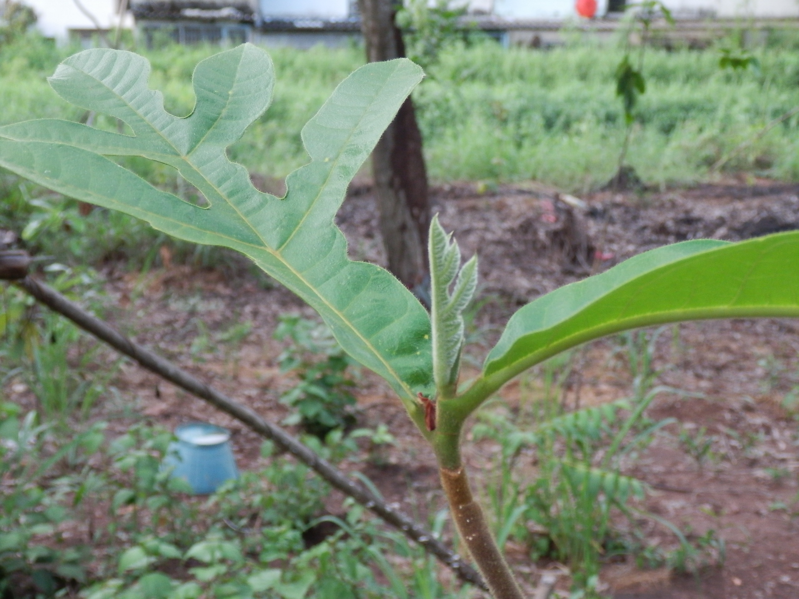 | ลักษณะใบ | ใบเดี่ยว เรียงเวียน รูปรีหรือรูปรีแกมรูปขอบขนาน ปลายแหลม ปลายสุดเป็นติ่งมนสั้น โคนสอบ ขอบไม่หยักเว้าแต่ย่นเป็นคลื่นชัดเจน ใบของต้นอ่อนเว้าลึกเป็นแฉก ๆ แผ่นใบหนาคล้ายแผ่นหนัง ด้านบนสีเขียวเข้มเป็นมัน ด้านล่างสีจาง ก้านใบยาว 1 - 3 เซนติเมตร หูใบม้วนคล้ายรูปกรวยแหลมหุ้มยอดยาว 1.3 - 2.6 เซนติเมตร เมื่อใบเจริญขึ้นหูใบจะร่วงไปเหลือรอยแผลตามกิ่ง |