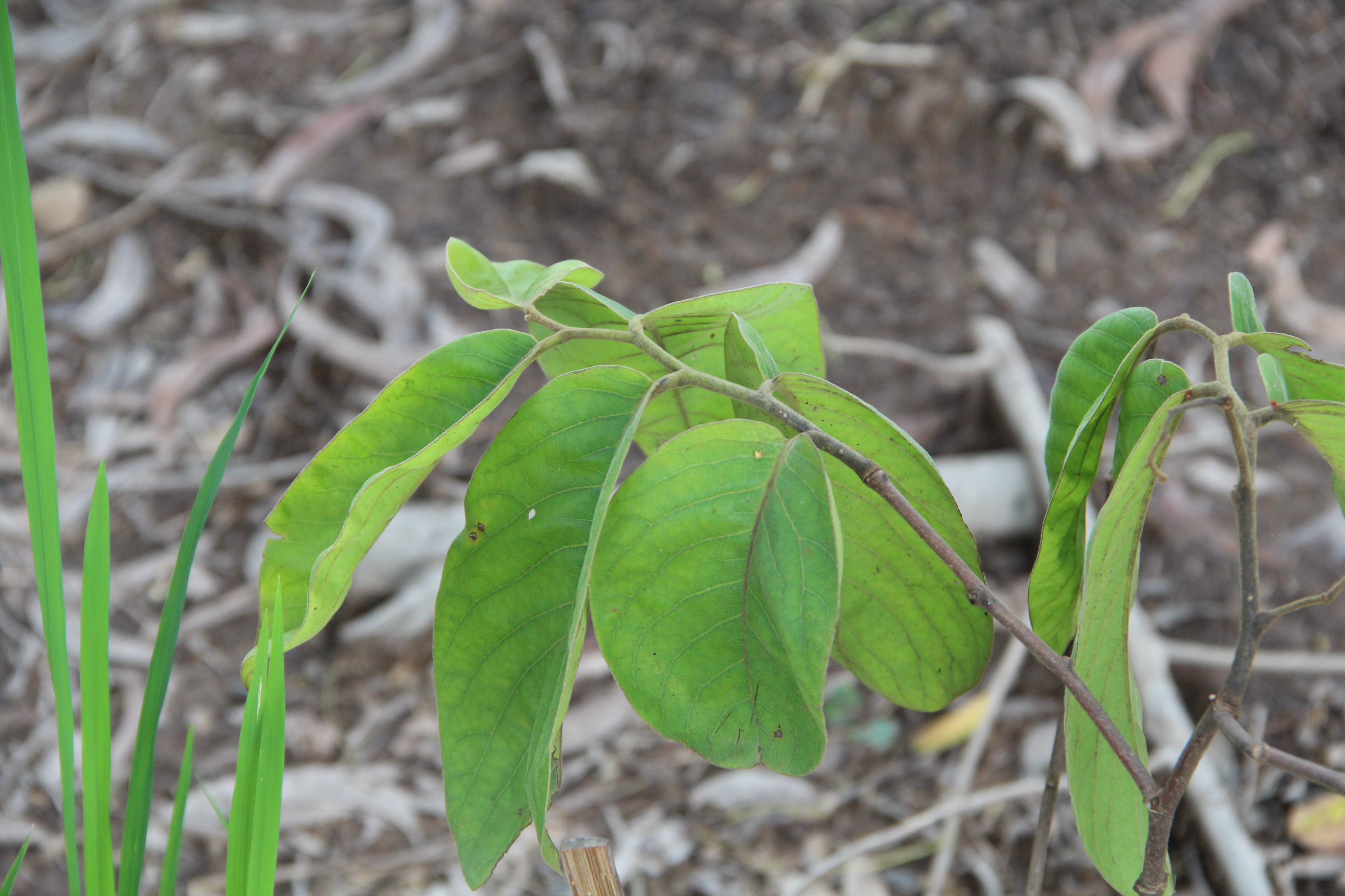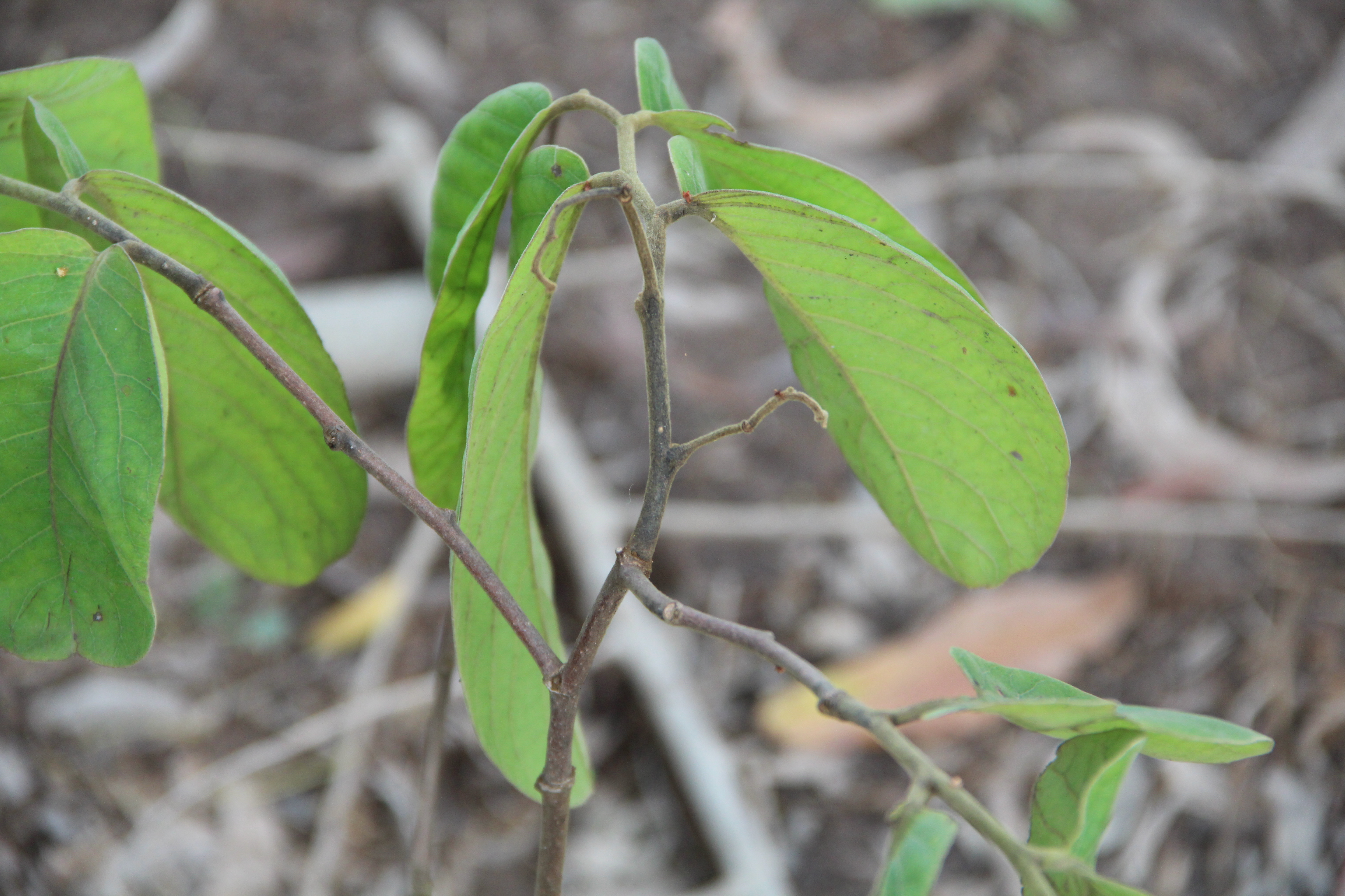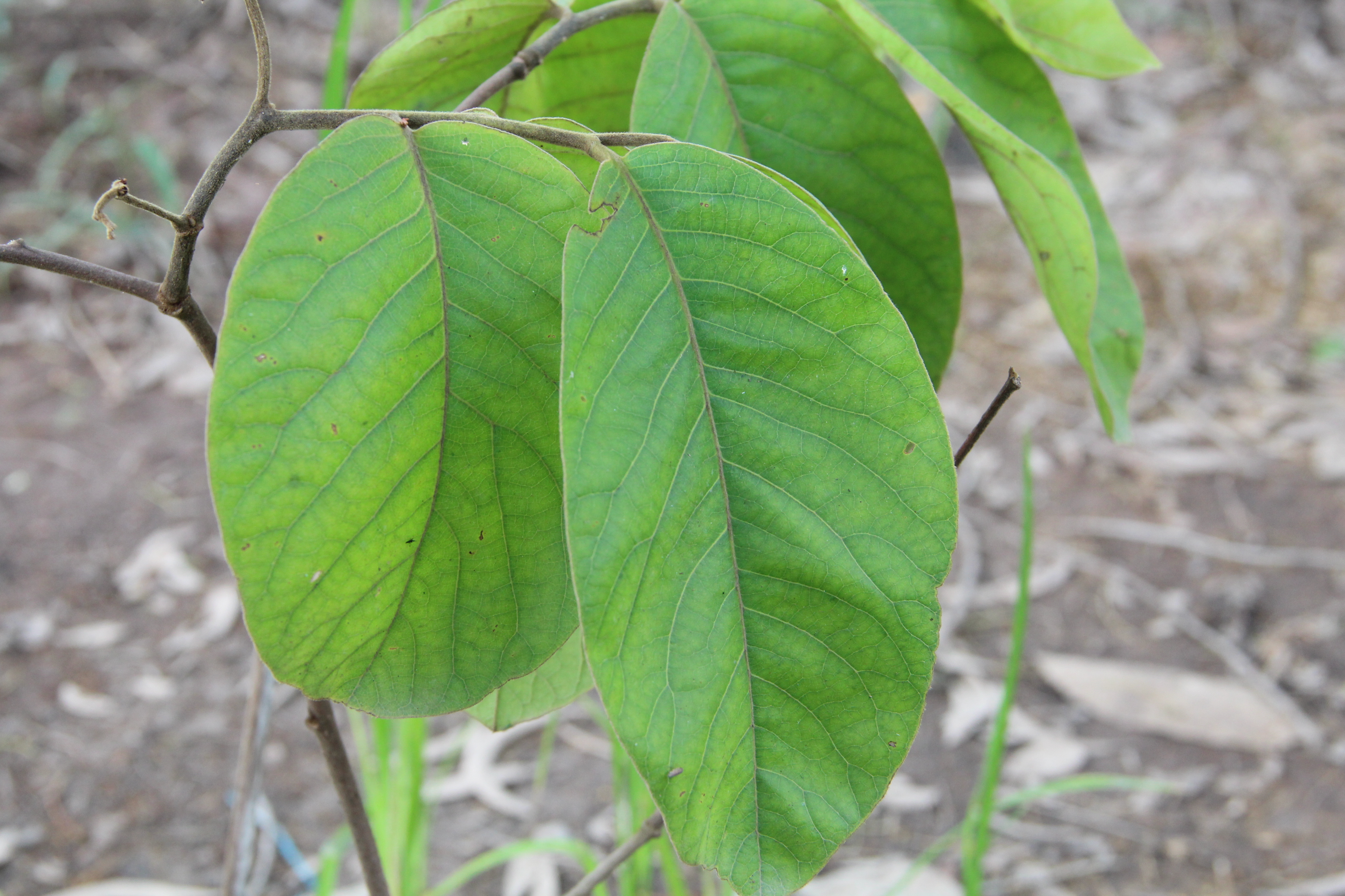 | ลักษณะใบ | ใบเดี่ยวออกเรียงสลับ ลักษณะของใบเป็นรูปรีค่อนข้างยาวหรือรูปรีถึงรูปใบหอก ปลายใบมนถึงเรียวแหลม โคนใบสอบถึงกลม ส่วนขอบใบเรียบ แผ่นใบหนาคล้ายแผ่นหนัง ผิวใบด้านบนมีขนขึ้นตามเส้นกลางใบ ส่วนผิวใบด้านล่างมีขนละเอียดสีน้ำตาลแดงสั้นหนานุ่มทั่วไป มีขนหนาแน่นตามเส้นใบ ปลายจรดกันใกล้ขอบใบ ปลายก้านใบมีข้อ ใบลักษณะลู่ลง |