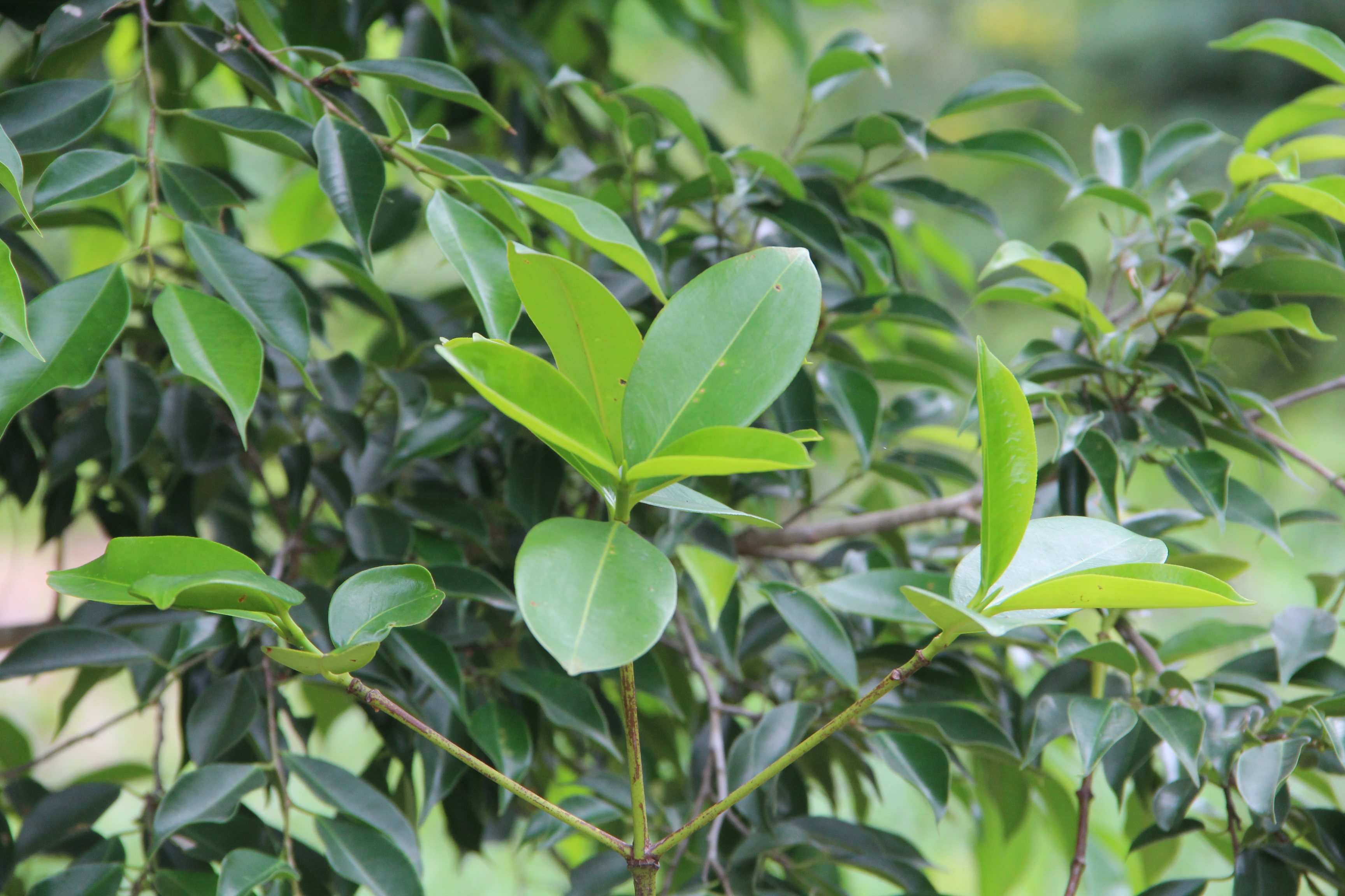| ลักษณะใบ | ใบเดี่ยว เรียงตรงข้ามสลับตั้งฉาก รูปรี รูปขอบขนาน รูปรีแกมรูปขอบขนาน รูปไข่กลับ หรือรูปไข่กลับแกมรูปขอบขนาน ปลายมนมีติ่งแหลม โคนสอบแหลม ขอบเรียบเป็นคลื่นหรือหยักซี่ฟันถึงจักฟันเลื่อย ด้านบนสีเขียวเป็นมัน ด้านล่างสีเขียวอ่อน เส้นกลางใบด้านบนเป็นร่อง |