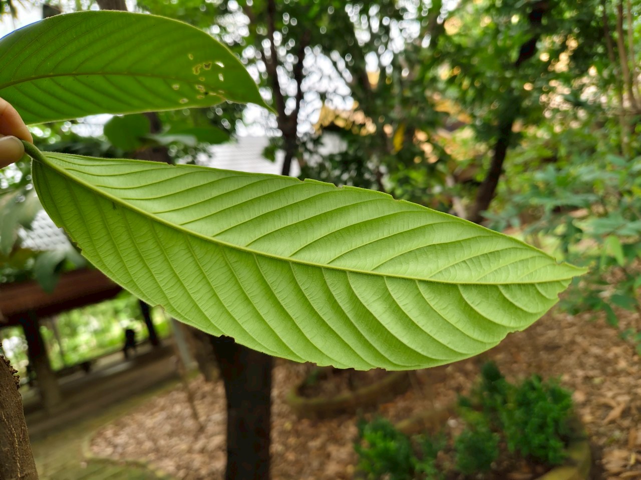 | ลักษณะใบ | ใบมีรูปรี หรือรูปไข่ปลายแหลม ไปจนถึงรูปหอกกลับ ยอดใบแหลม แผ่นใบหนา หน้าใบเป็นมัน เส้นกลางใบฝังจมอยู่ในผิว ใบด้านบนเป็นมัน หลังใบระคายมีขนเล็กน้อย |
