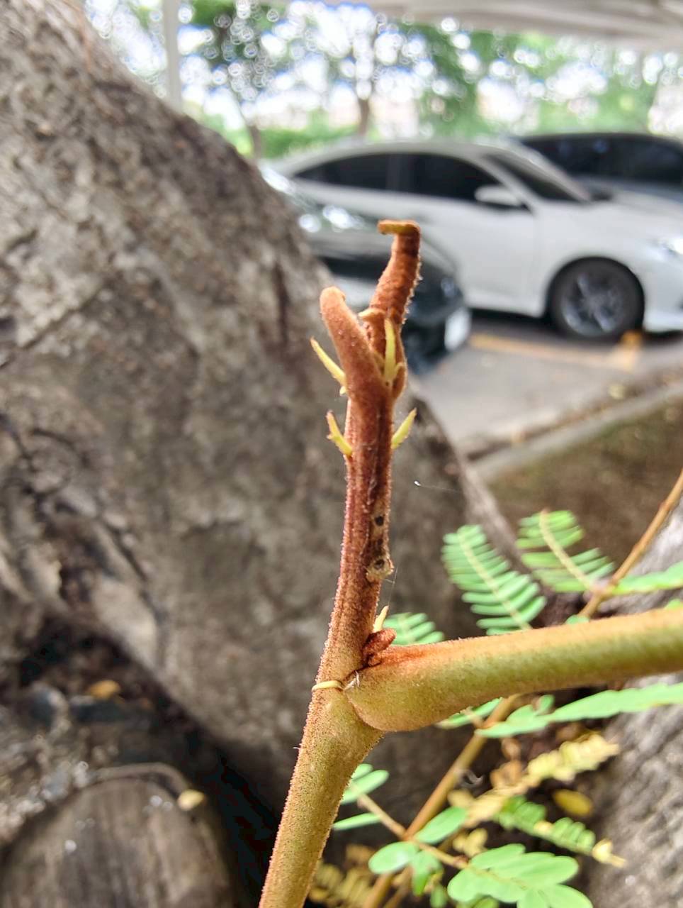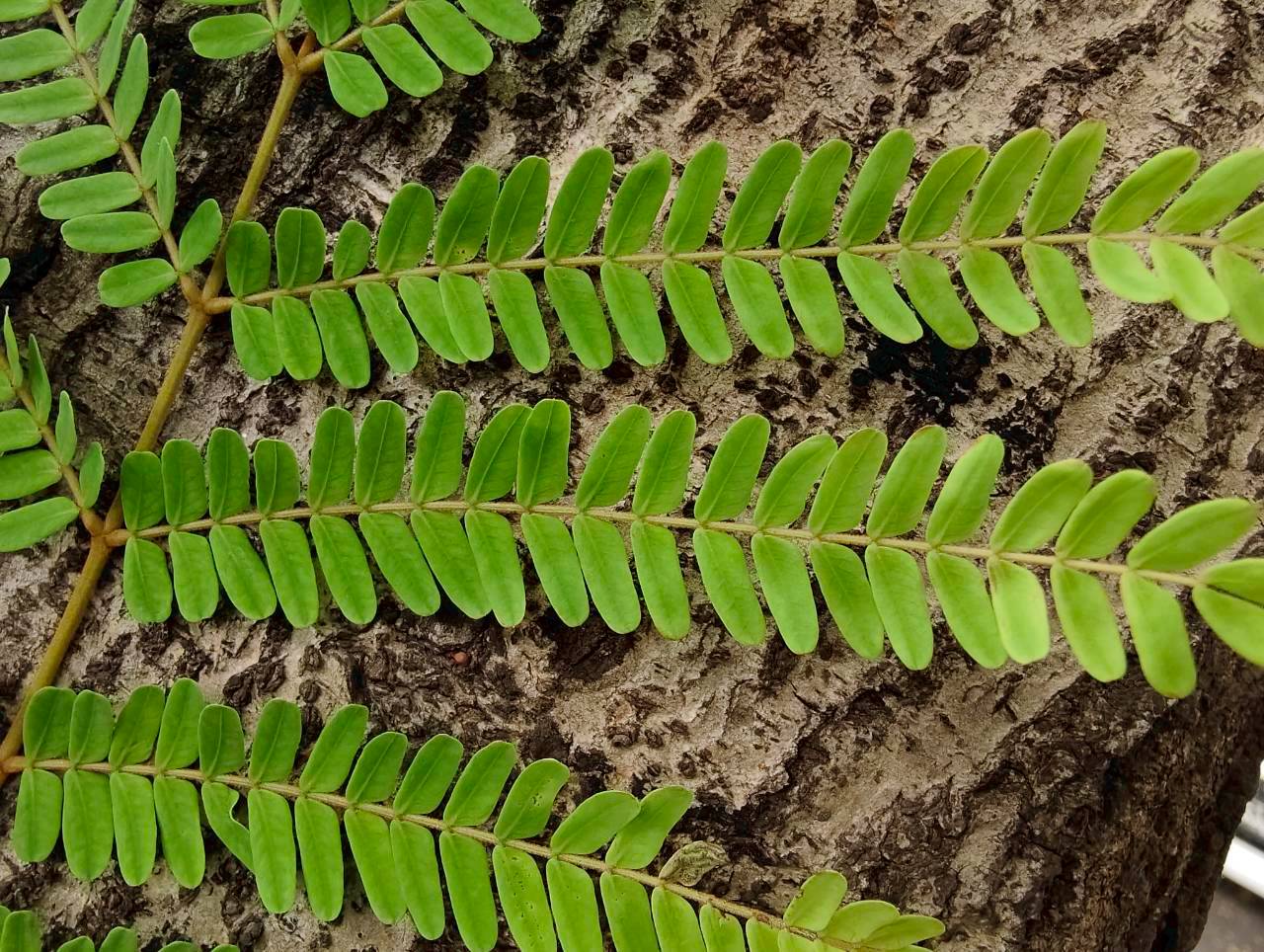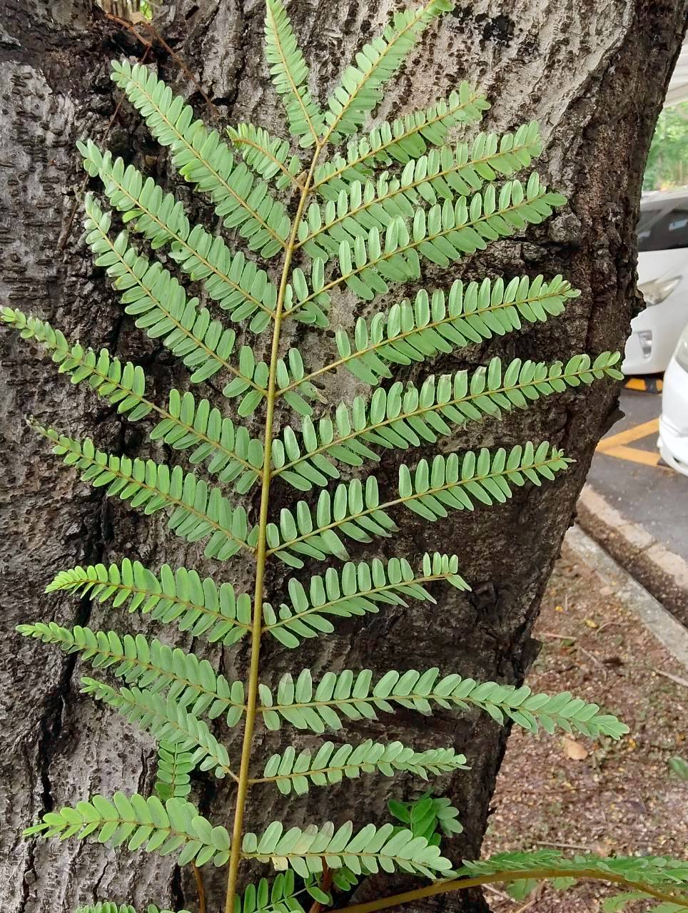 | ลักษณะใบ | เป็นช่อแบบขนนก 2 ชั้น ติดเรียงเวียนสลับแน่น ตามปลายกิ่ง ใบย่อยโคนใบสอบและเบี้ยว ปลายใบทู่หรือหยักเข้าเล็กน้อย หลังใบสีเขียวเข้ม ส่วนท้องใบสีจาง ขอบใบเรียบ |