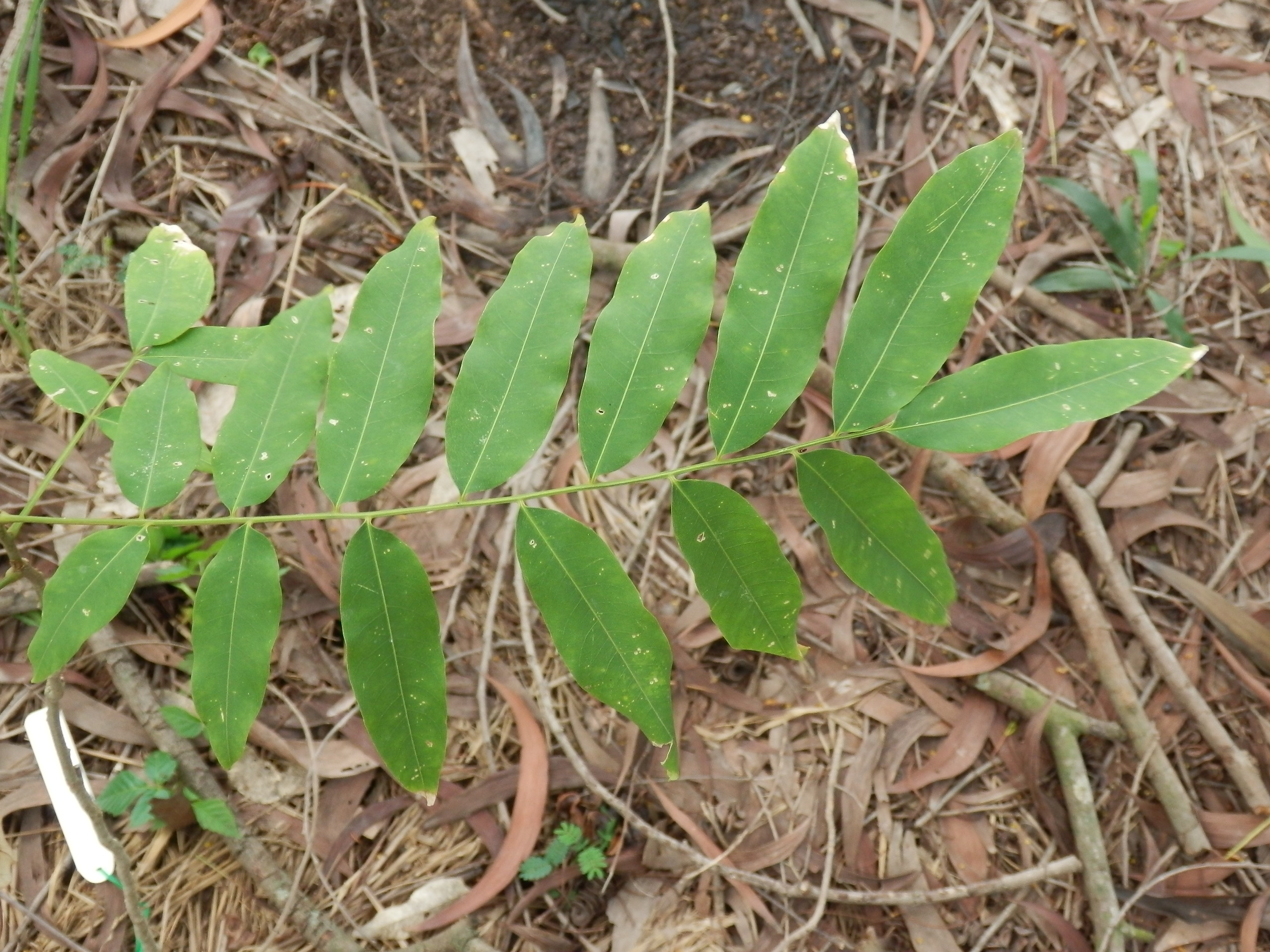 | ลักษณะใบ | เป็นใบประกอบแบบขนนก มีใบย่อย 2 - 4 ใบ รูปรีแกมรูปขอบขนาน ปลายใบและโคนใบมน ขอบใบเรียบ แผ่นใบเรียบ มีสีเขียว |