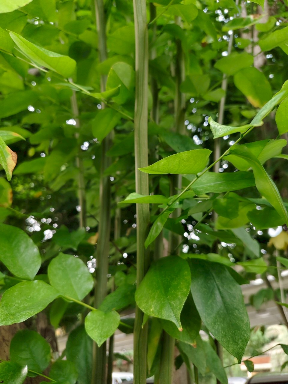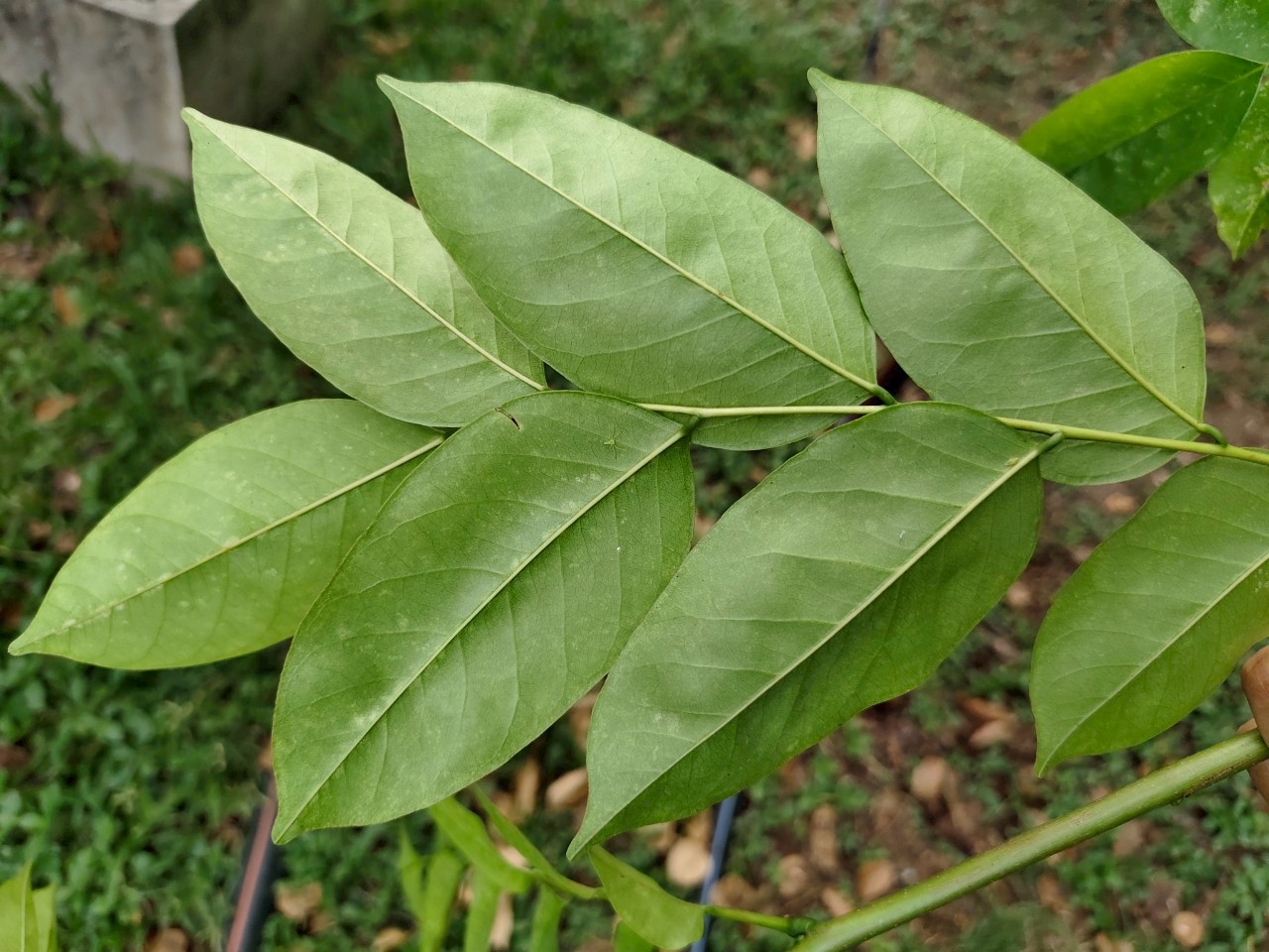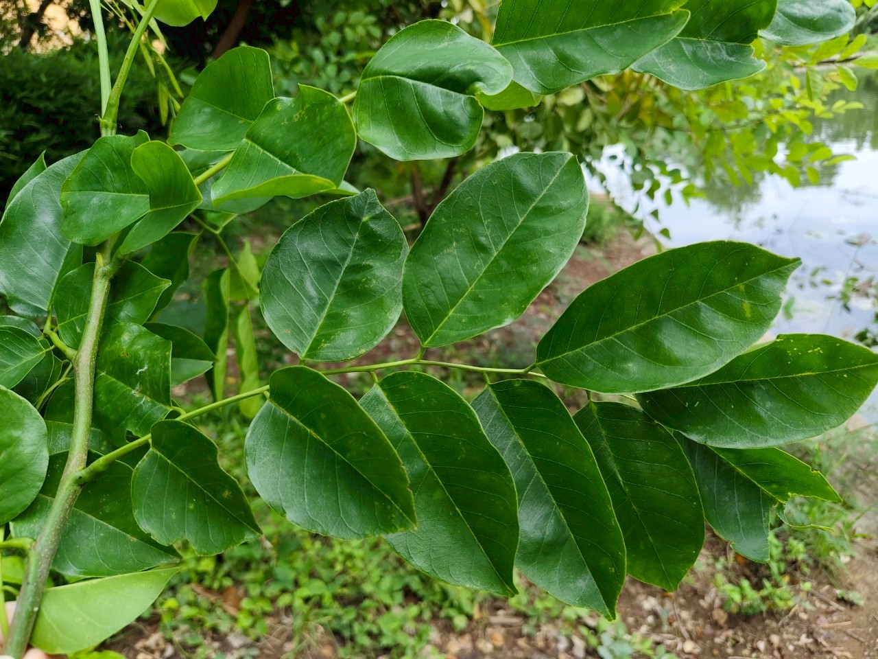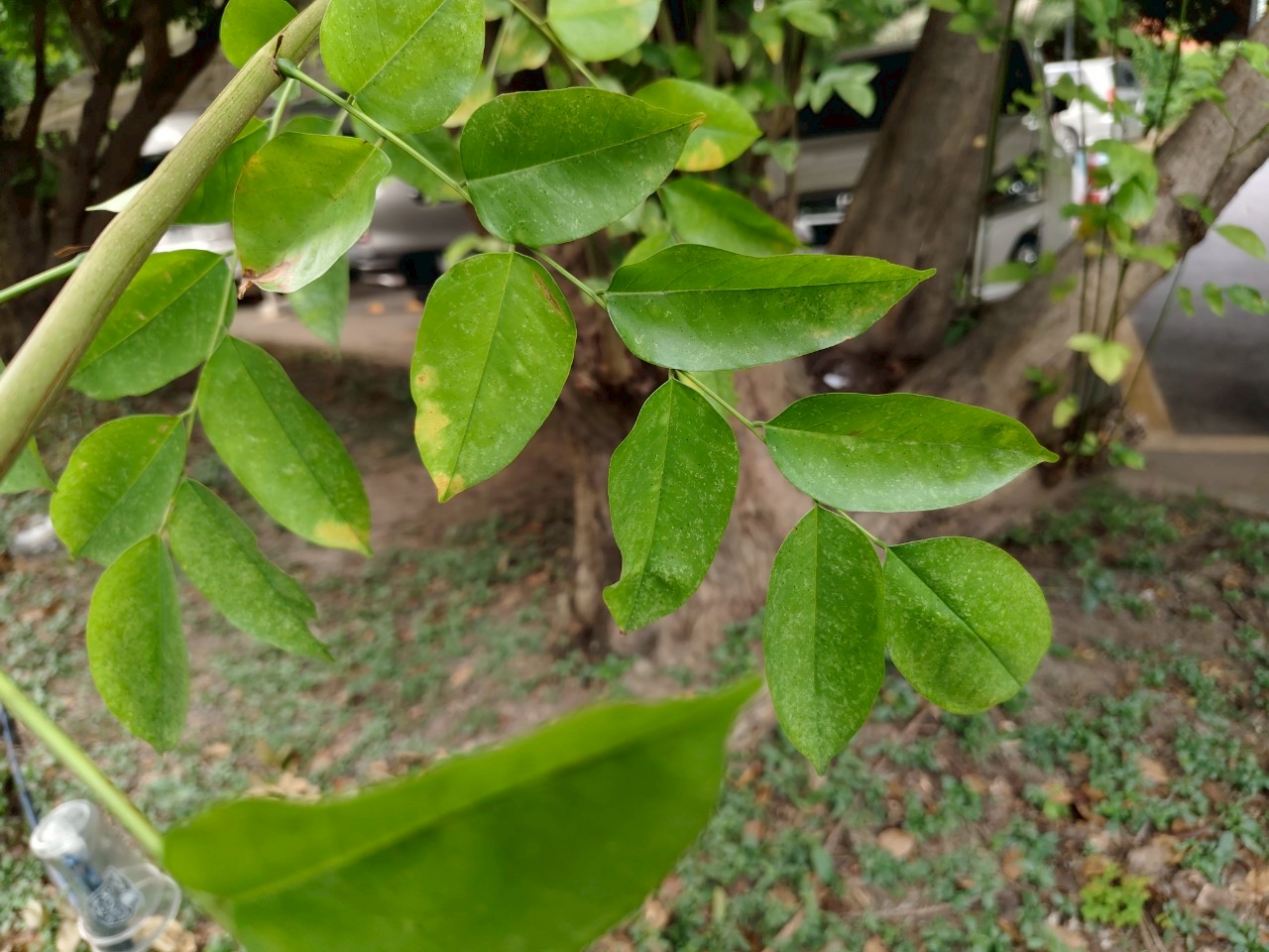 | ลักษณะใบ | เป็นใบประกอบแบบขนนกชั้นเดียวปลายคี่ เรียงเวียน มีใบย่อย 7 - 19 ใบ เรียงสลับ รูปรีหรือรูปไข่ ปลายแหลม มน หรือเป็นติ่งทู่ โคนมนหรือเบี้ยว ขอบเรียบ แผ่นใบบางคล้ายกระดาษ ค่อนข้างเกลี้ยงทั้ง 2 ด้าน |