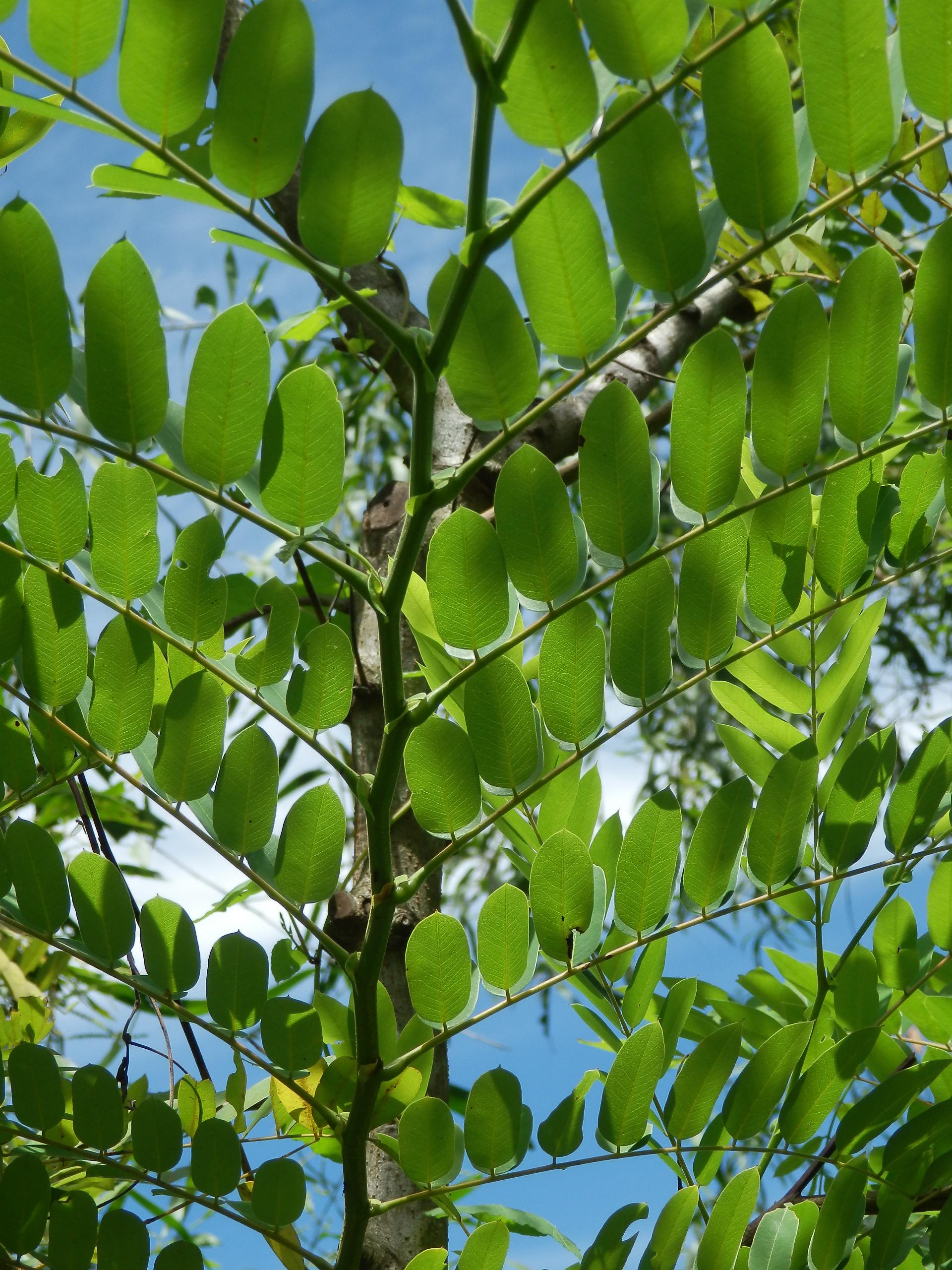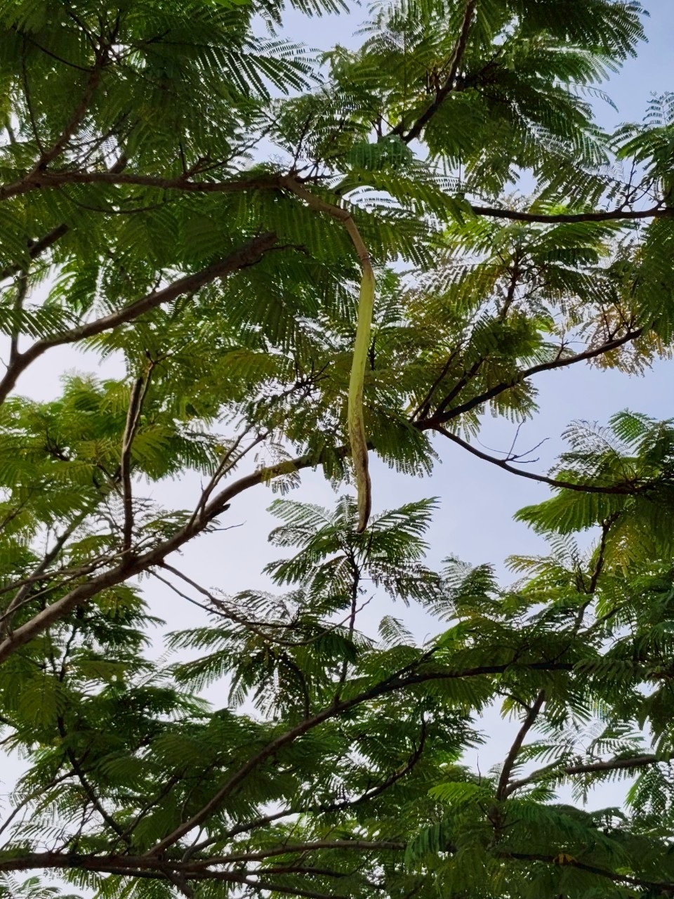 | ลักษณะผล | ลักษณะของผลเป็นฝักแบนแข็ง โค้งเป็นรูปดาบ ยาวประมาณ 30 - 60 เซนติเมตร และกว้างประมาณ 3 - 5 เซนติเมตร ลักษณะของฝักเป็นข้อ ๆ แต่ละข้อจะมีเมล็ด 1 เมล็ด เมื่อฝักแก่จะแตกออก และในฝักมีเมล็ดเรียงอยู่ตามขวางประมาณ 20 - 40 เมล็ด |