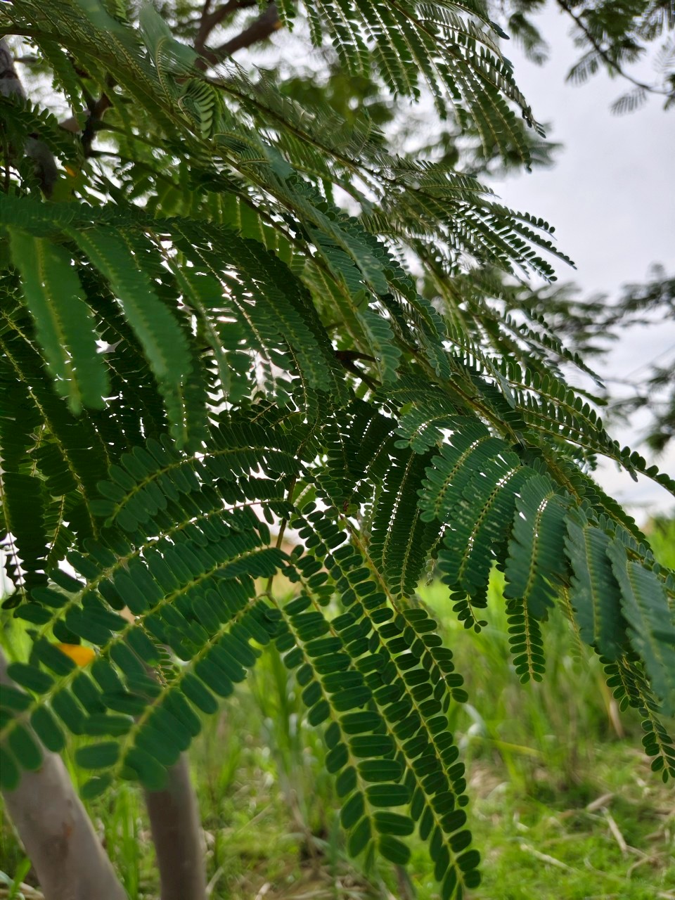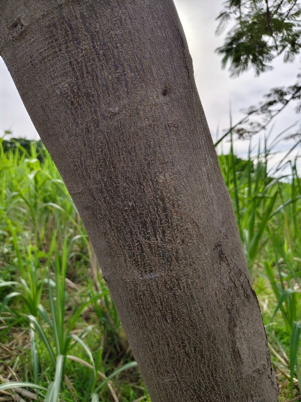 | ลักษณะวิสัย | เป็นไม้ยืนต้นขนาดกลาง เมื่อต้นโตเต็มที่จะมีความสูงประมาณ 12 - 18 เมตร มีเรือนยอดแบแผ่กว้างเป็นทรงกลมคล้ายร่ม และแผ่กิ่งก้านออกคล้ายกับต้นจามจุรี แต่จะมีขนาดเล็กกว่า ลำต้นหางนกยูงฝรั่ง ลักษณะลำต้นจะเกลี้ยง เปลือกมีสีน้ำตาลอ่อนอมขาวถึงสีน้ำตาลเข้ม โคนต้นเป็นพูพอน และเมื่อต้นโตเต็มที่มักจะมีรากโผล่ขึ้นมาบนดินโดยรอบ |