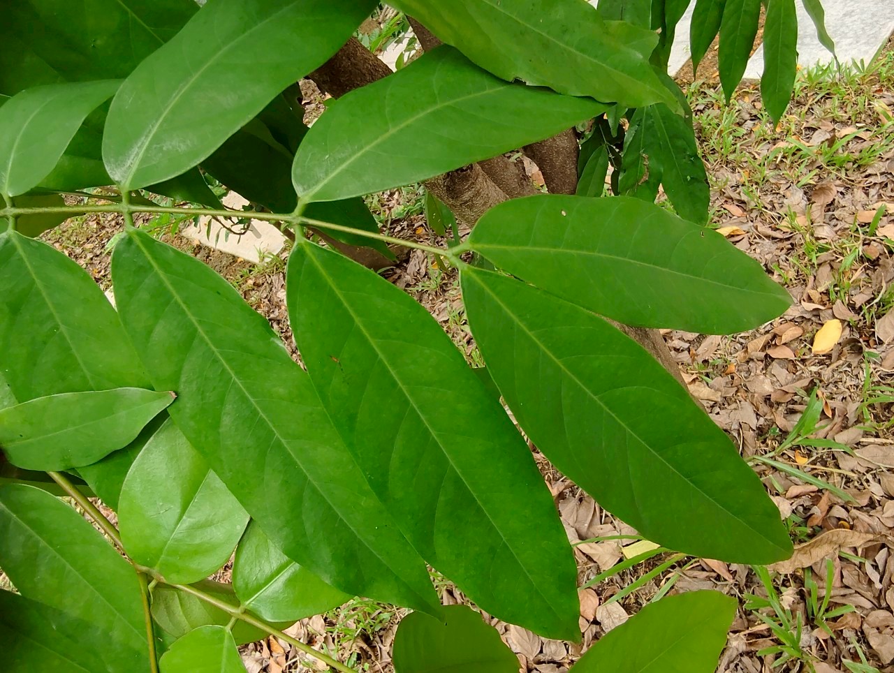 | ลักษณะใบ | ใบเป็นใบประกอบแบบขนนก ปลายคู่ เรียงสลับ ใบย่อย 2 - 7 คู่ เรียงตรงข้าม ใบรูปรี รูปขอบขนานแกมรูปใบหอกหรือรูปไข่ กว้าง 3 - 9 ซม. ยาว 7 - 32 ซม. ปลายใบแหลมหรือเรียวแหลม โคนใบมนหรือสอบเรียวผิวใบด้านบนมองเห็นเส้นแขนงใบเป็นร่องลึกชัดเจนข้างละ 10 - 12 เส้น ก้านใบย่อยยาว 3 - 5 มม. |